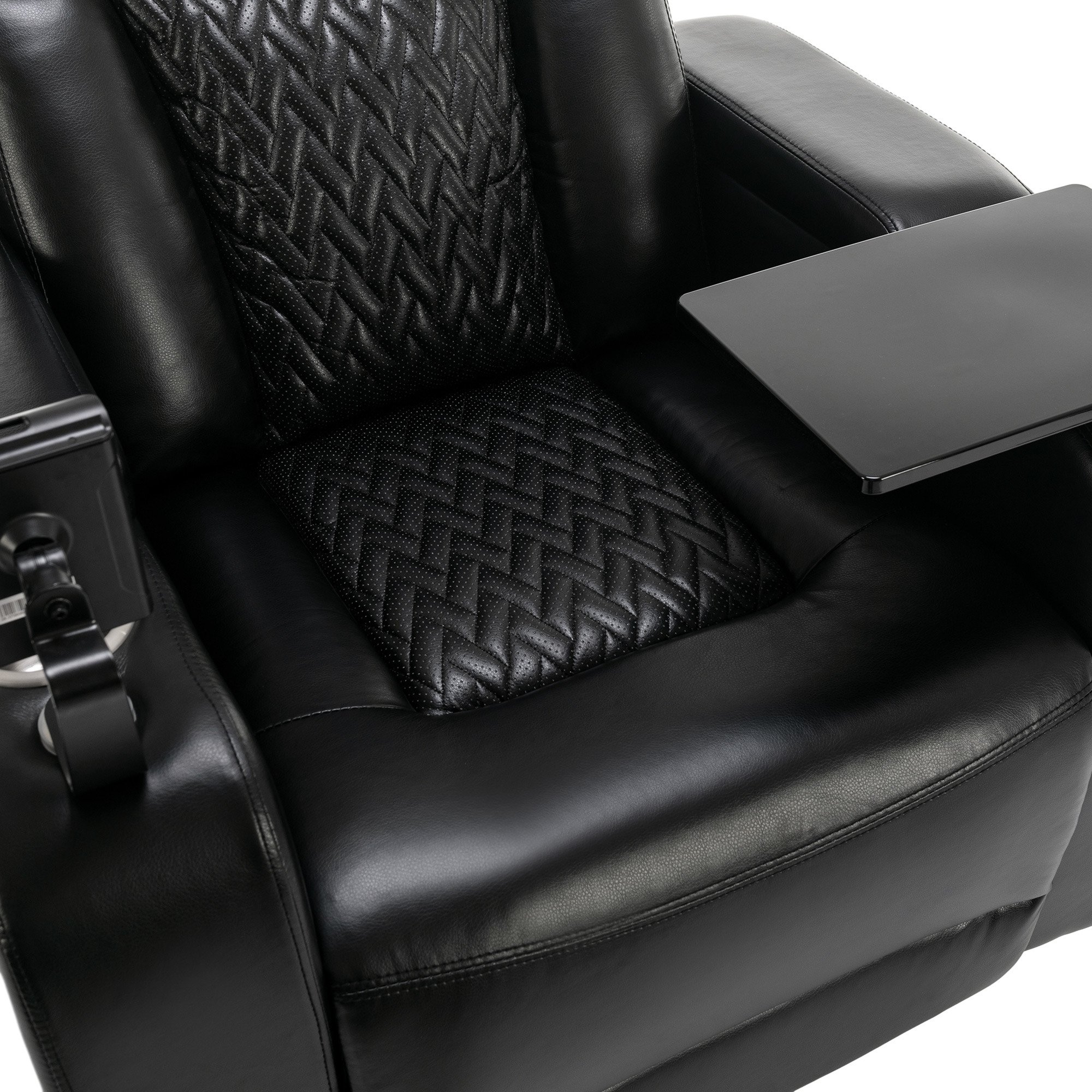 > 270 Degree Swivel PU Leather Power Recliner Individual Seat Home Theater Recliner with Comforable Backrest, Tray Table, Phone Holder, Cup Holder