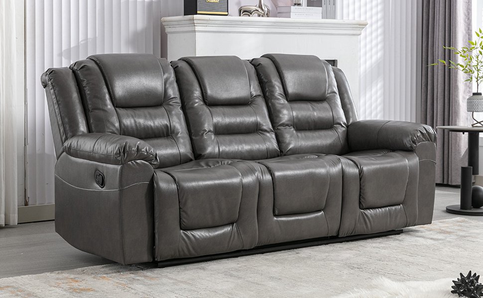 A Drop-down Table with Two Cup Holders - The middle seat of this recliner can be a drop- down table for you to put your stuffs when you put the backrest down. And you can keep your favorite beverages within arm's reach with the two built-in cup holders. No need to worry about spilling your drink during intense movie scenes or gaming moments. Sit back, relax, and enjoy your favorite drink without any interruptions.