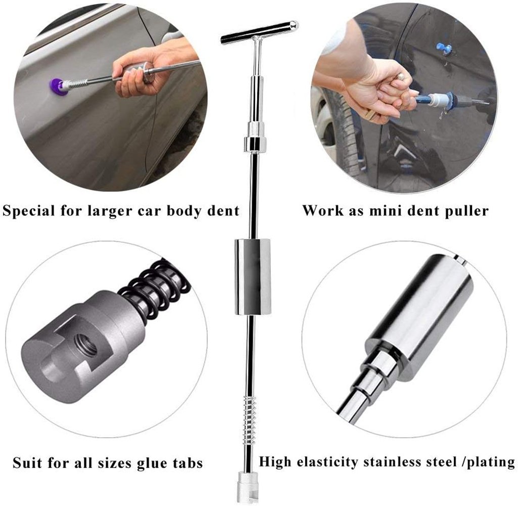 3.3. Effective Dent repair - T-type mark remover can easily remove dents! It contains the tools needed to repair dents of various sizes and shapes. Ideal repair kit for cars, motorcycles, refrigerators, doorbells and hail damage.