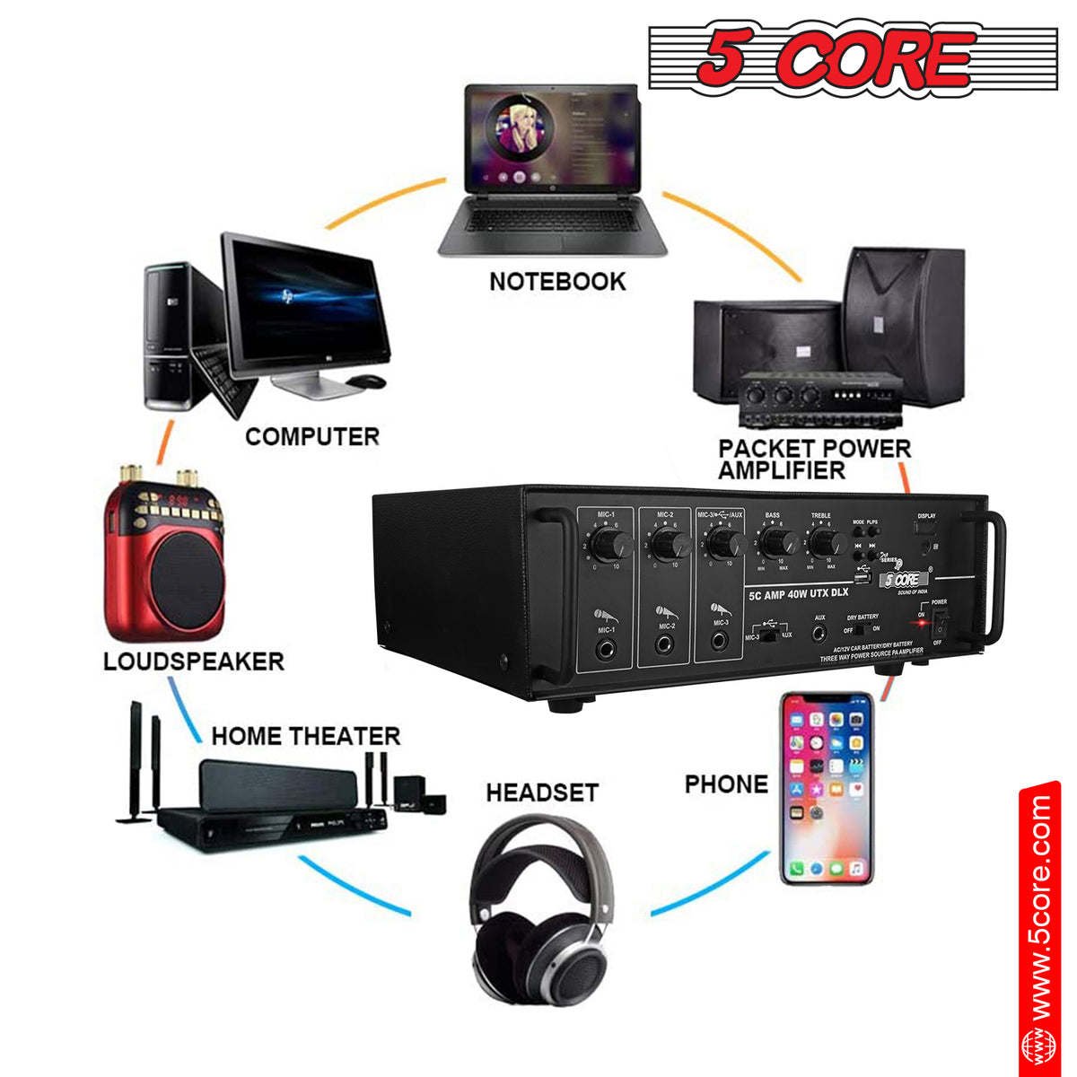 Experience loud, clear audio with our high performance 40W RMS amplifier. Customize your sound with bass and treble control for perfect equalization. Versatile inputs include three mics, AUX, and USB, allowing easy connection of your sound sources. Built for reliability, its rack-mountable metal construction and anti-corrosion paint ensure durability. Power in via an AC outlet or car battery, making it ideal for both indoor and outdoor use. Elevate your audio experience with a robust and adaptable amplifier designed to meet all your needs. |