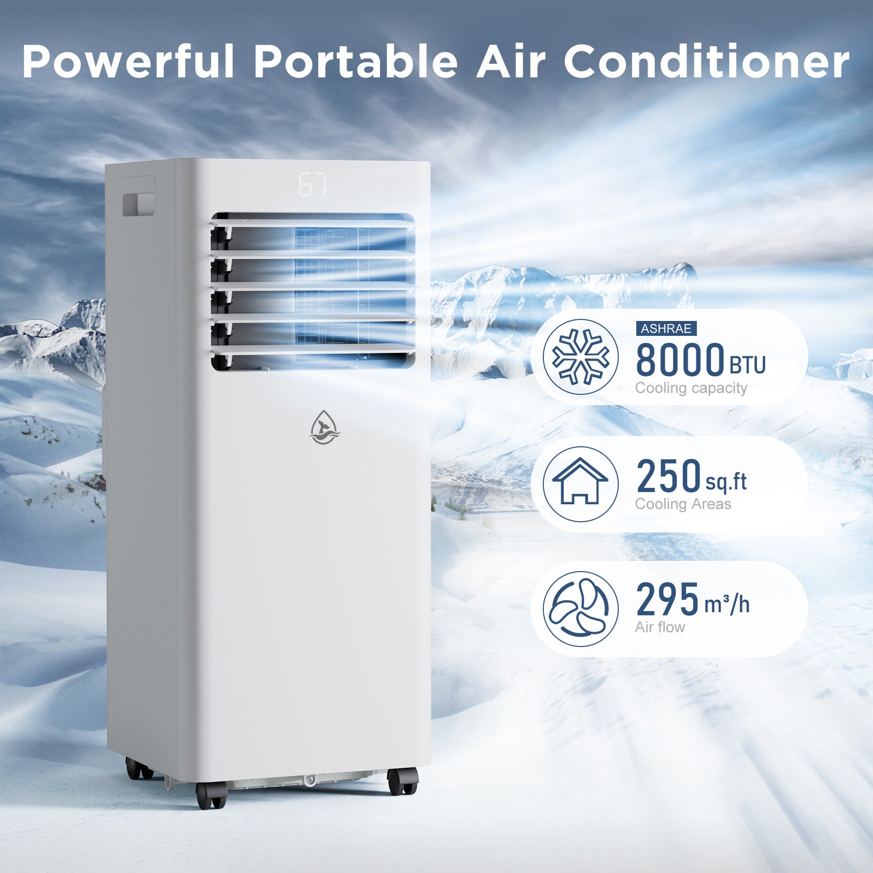 8,000 BTU Powerful Cooling & 24Hrs Timer: LUBAIR 8,000 BTU portable air conditioner perfect for quickly and effectively cooling rooms up to 300 sq.ft. The portable AC unit features a 24hrs on/off timer that allows you to pre-set the unit to turn on/off at specific times, can cool a room to the temps between 63°F-86°F in this summer.