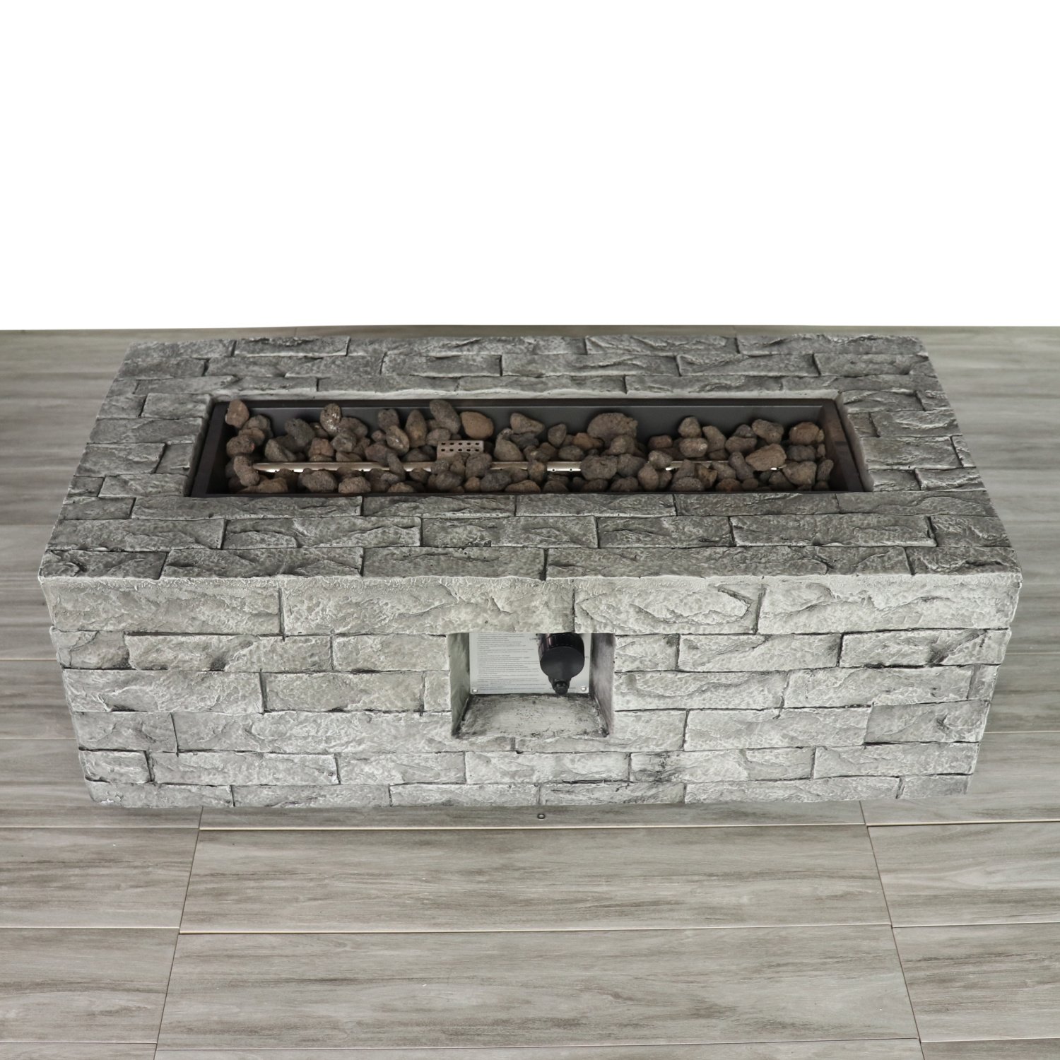 Turn any chilly evening into a cozy warm night by huddling around this fire pit! Crafted with a beautiful fiber concrete construction, this fire pit is a winner when entertaining guests in your backyard and enjoying outdoor living! The fire put burns at a rate of 50,000 BTU and is suitable for year-round use.What's Included?FillerCoverNatural VariationNatural Stone Color Variation(Natural differences in color and finish.)