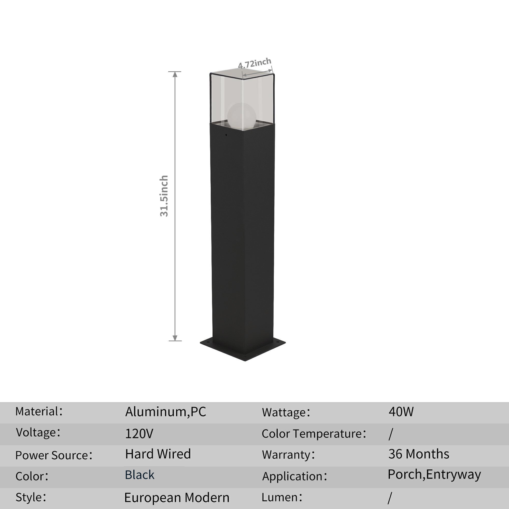 2.Driveway lights details: Hardwired, 2 heights 2 colors available, pathway lights size: 4.72*4.72*19.69/31.5in, Max.40W, E26 base (bulb not included)