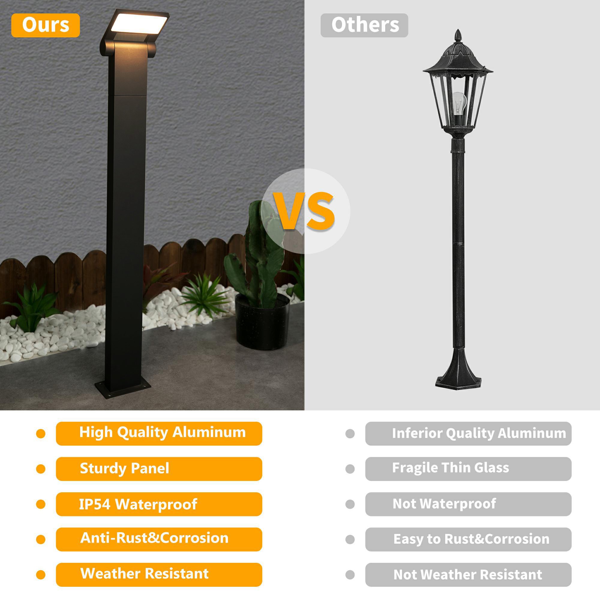 Good design is simple and stylish: Elegant and classic outdoor lights are the best choice for outdoor lighting. This garden light is made of 100% heavy-duty sturdy die-cast aluminum. The landscape is bright and shocking; and the service life is more than 50; 000 hours; making it more durable.