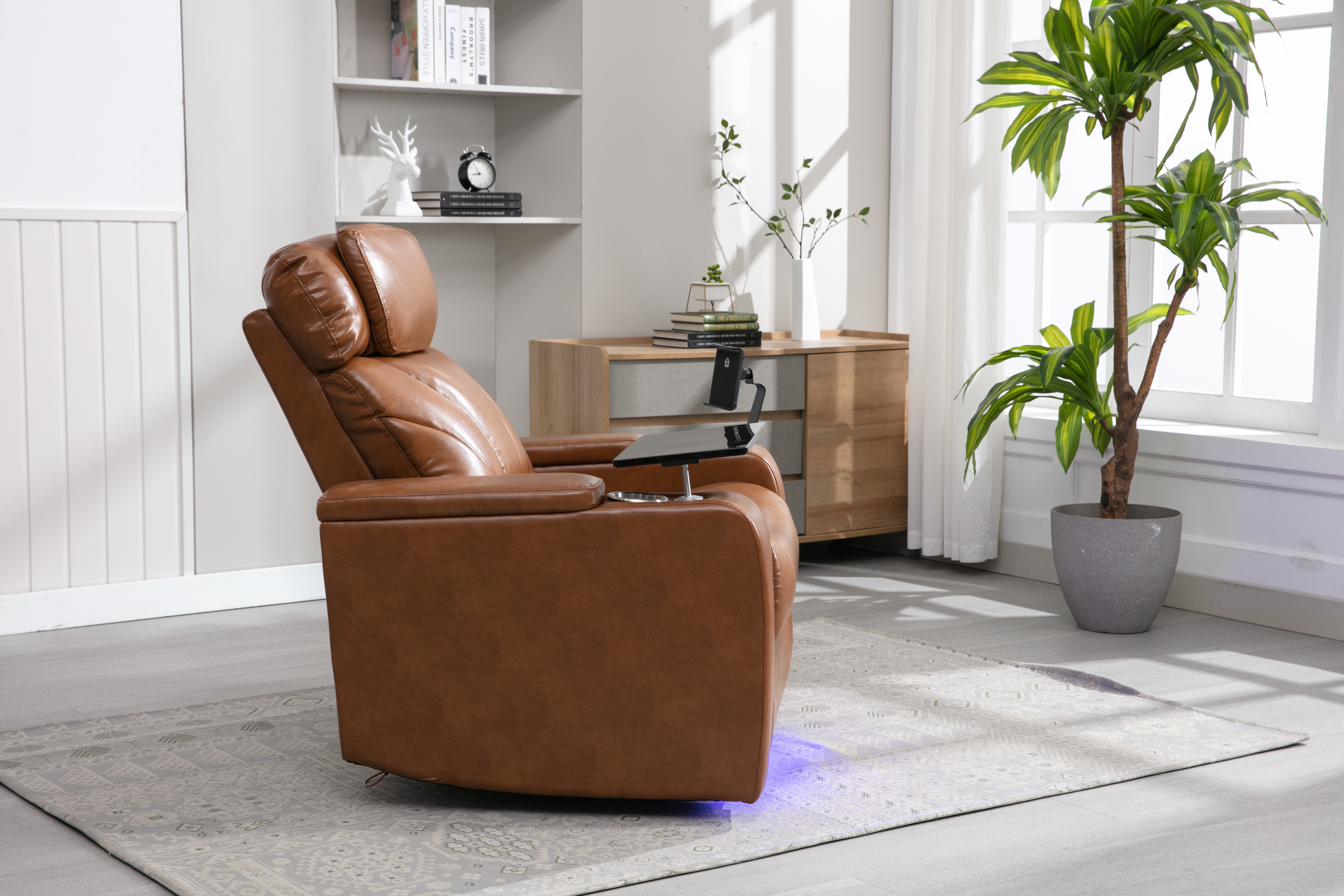 > Power Motion Recliner with USB Charging Port and Hidden Arm Storage, Home Theater Seating with Convenient Cup Holder Design ,and stereo(Light Brown)