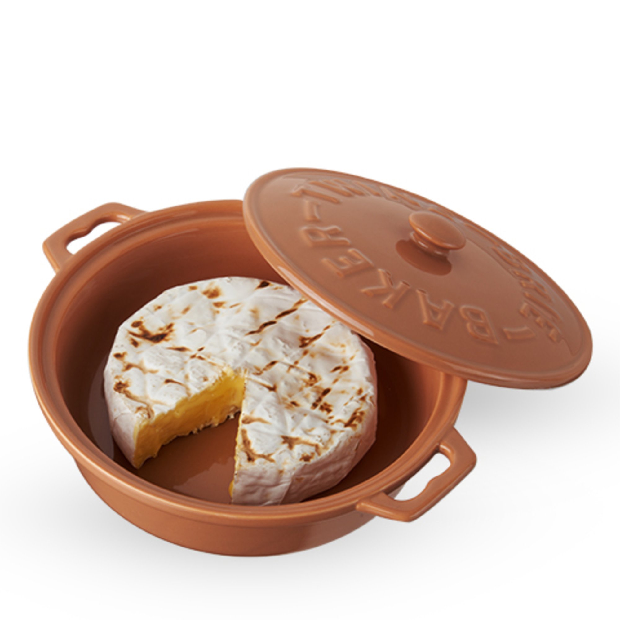 • CERAMIC BRIE BAKING DISH - Everybody loves baked brie cheese bites. This tried and true appetizer just got easier with our ceramic bakeware set. Complete with a lid, handles, and an acacia wood spreader for serving, this brie baker is useful and beautiful.
