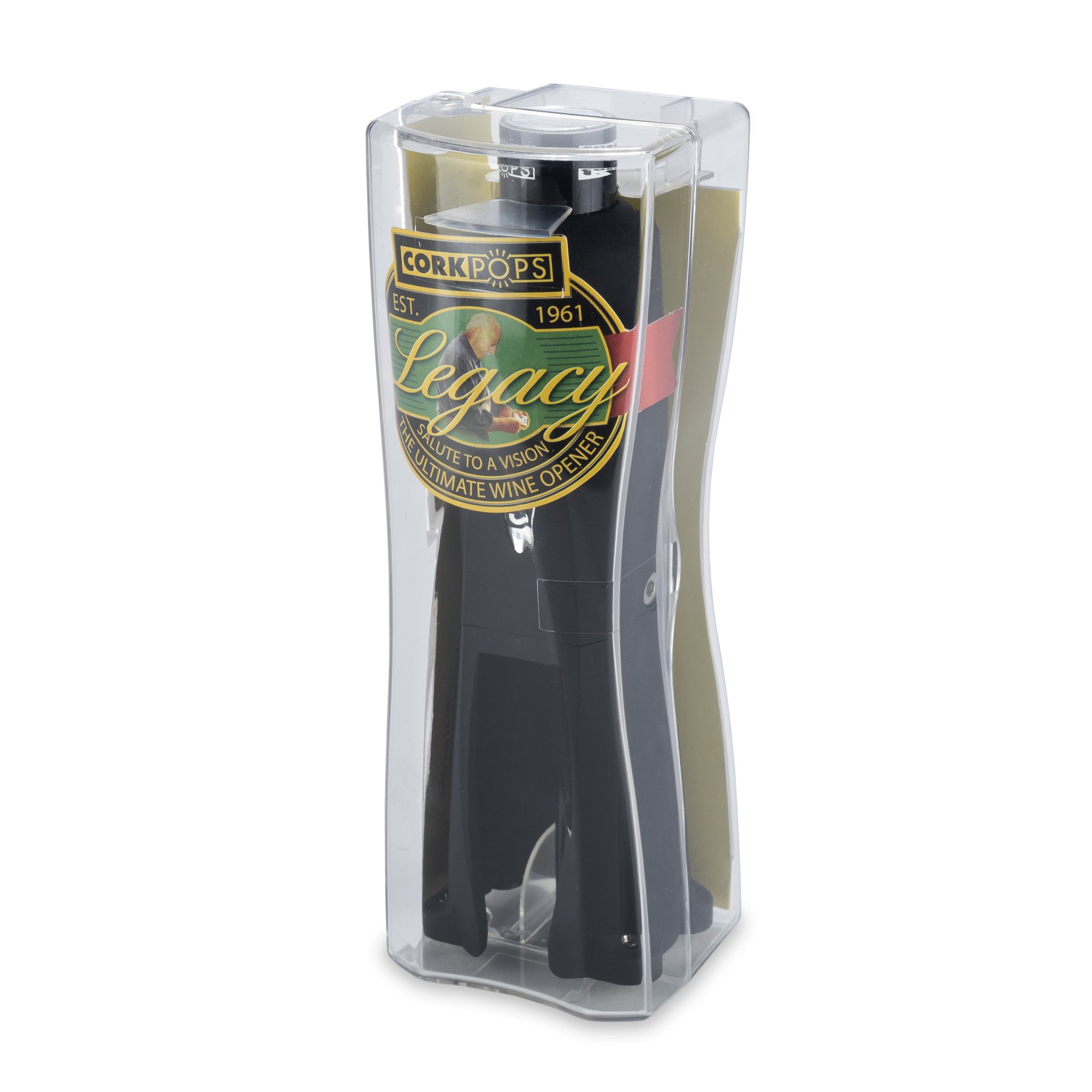 Cork Pops Legacy is designed to fit all traditional wine bottles as well as the new flanged lip bottles. The new rubberized black finish makes it the perfect addition to any style barware - easier to grasp and the new streamlined shape makes it more user friendly and ergonomic.