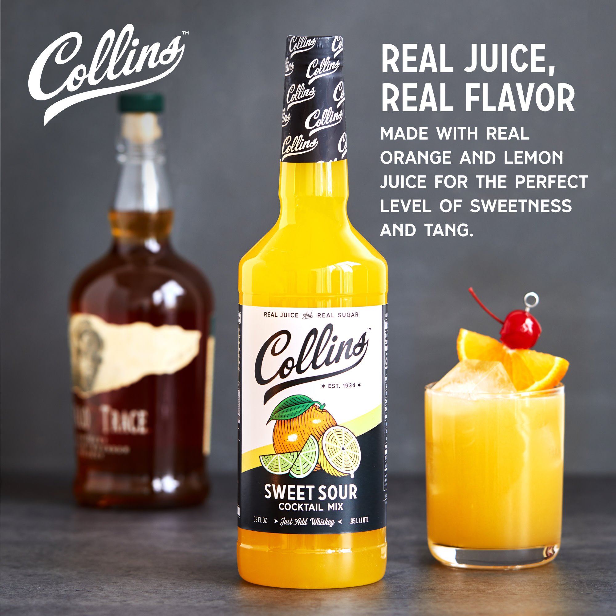 A best-seller and American classic, Collins Sweet and Sour mixer offers the perfect complement to any craft cocktail. Newly reformulated with the finest ingredients, including orange and lemon juice, Collins Sweet and Sour cocktail mix carries on our mission to ensure a quality cocktail experience for all.