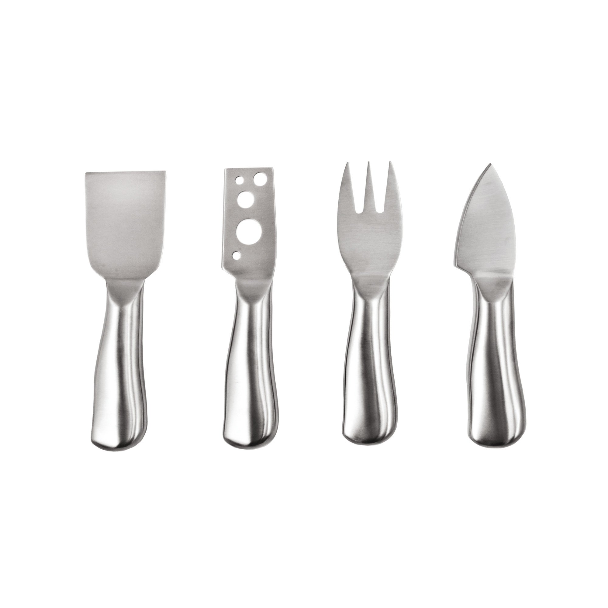 • FOUR ESSENTIAL CHEESE TOOLS - Upgrade your cheese tastings with these 4 stainless steel cheese tools, including a small spade knife for soft cheeses, a perforated blade, a flat chisel for hard cheeses, and a stout serving fork.