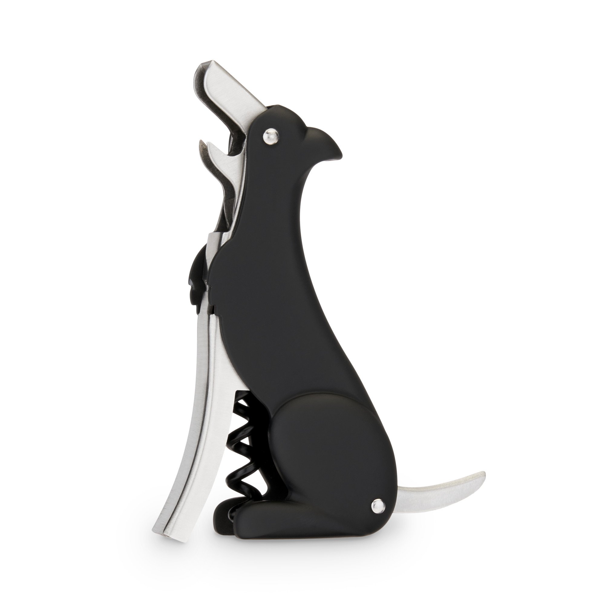 Whether you’re a purebred boozehound or just drink wine once in a blue moon, this loyal bar accessory will be by your side. No more howling over unopened bottles. This best in show corkscrew sports a double-hinged design for extra leverage, plus bottle opener and serrated foil cutter, all in a unique canine design. Double hinged design provides extra leverage Bottle opener mouth Serrated foil cutter tail Stainless steel with soft-touch finish