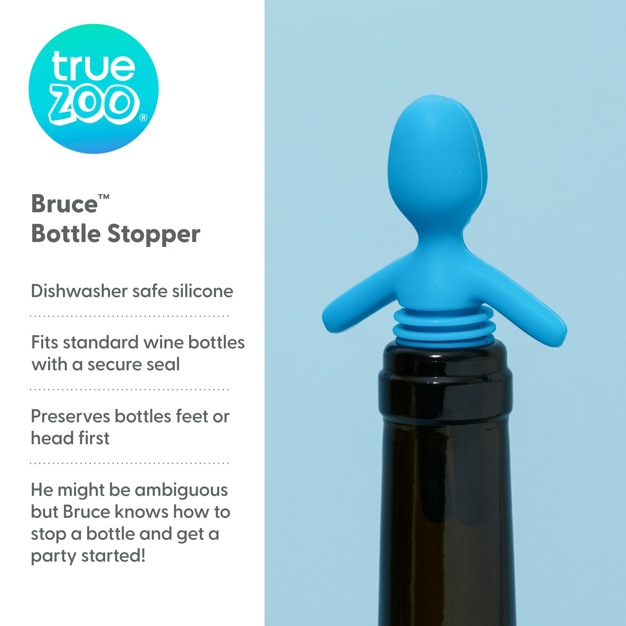 • PRESERVE YOUR WINE WITH PANACHE - Bruce is ready to dive head first or feet first into your wine bottle. This charming blue silicone wine stopper is shaped like a little man and perfectly seals your bottles to keep them fresh.