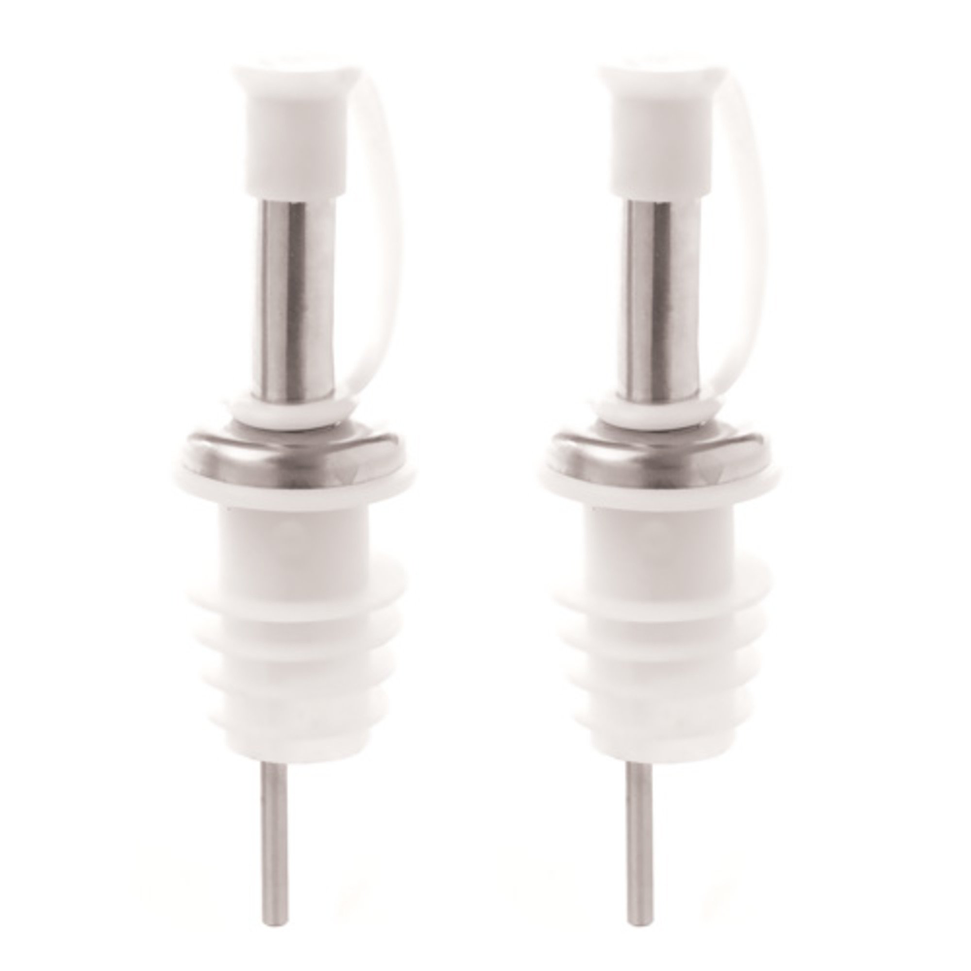 • SET OF 2 BOTTLE POURERS - This set of 2 pourer spouts for bottles are great bar accessories for your favorite liquor bottles or as an olive oil spout. Add these precision pour spouts to your bar cart or kitchen for clean pours.