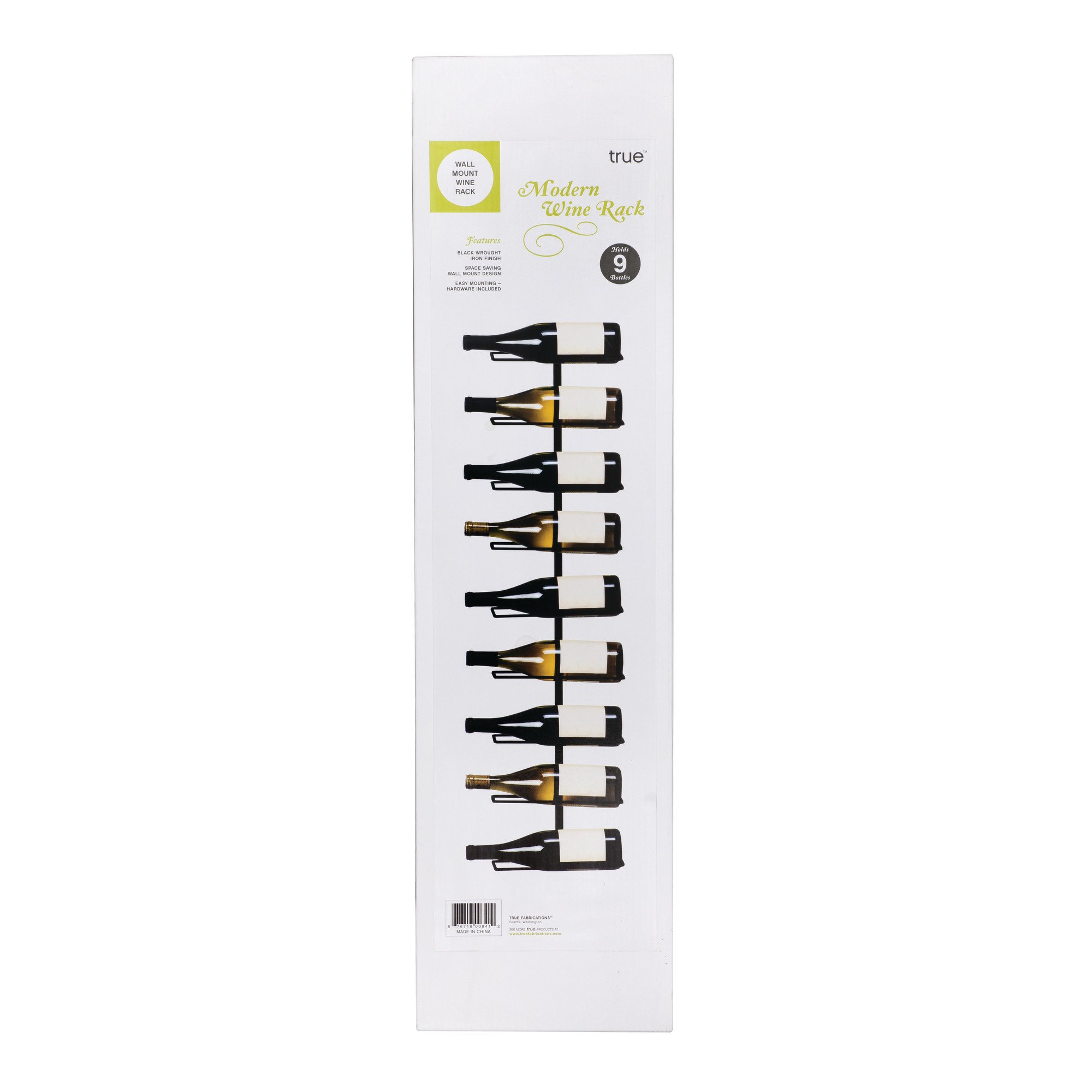 Simple and streamlined, the Align Wall-Mounted Wine Rack is crafted from black wrought iron to display nine red, white or sparkling wines in perfect vertical alignment on any wall. The modern minimalism of the frame puts maximum emphasis on bottles and labels. Kit includes screws for easy installation. Black wrought iron Wall-mounted wine rack Includes mounting screws Holds 9 standard bottles 37.75 x 9.75 inches True makes entertaining simple and elegant with stylish, functional serveware, dishes, and entertaining accessories. Combining streamlined design with functional utility, True elevates the basics.