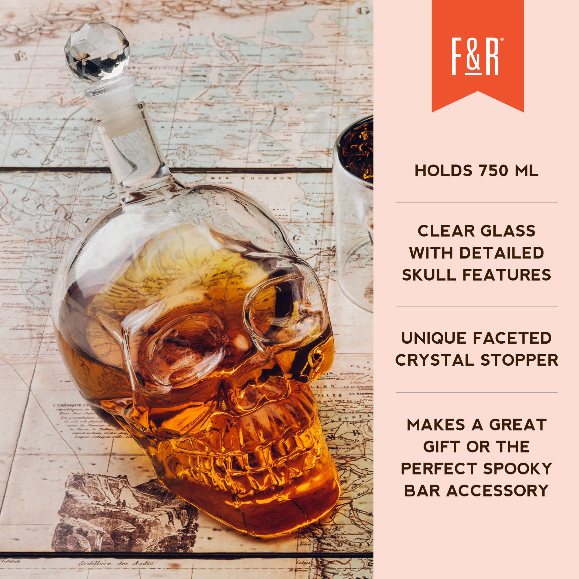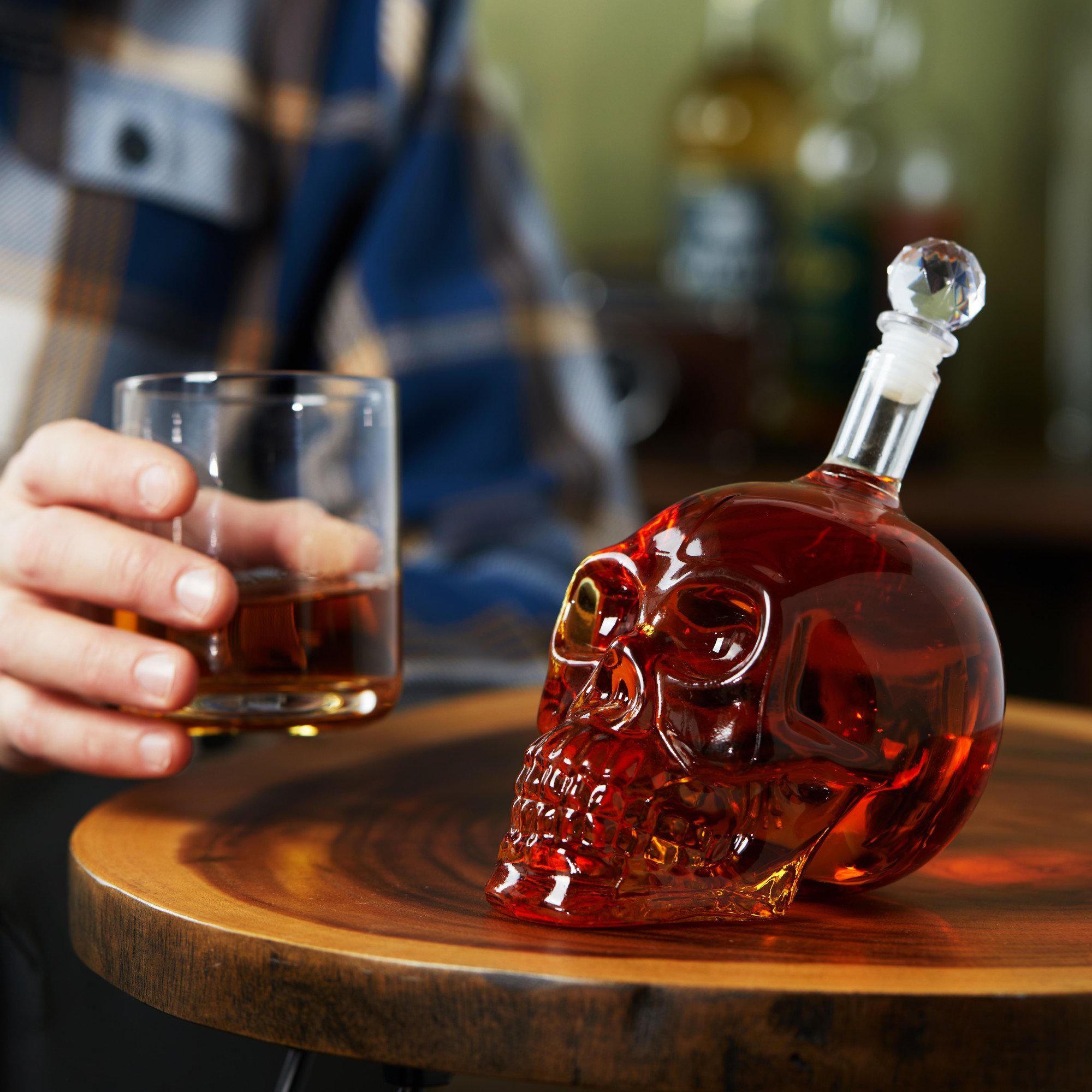 • CRYSTAL SKULL DECANTER - No bones about it: this skull liquor decanter is the coolest decanter out there. Whether you wish everyday was Halloween or just want an eye-catching way to store your booze, this decanter will have your friends dying of envy.