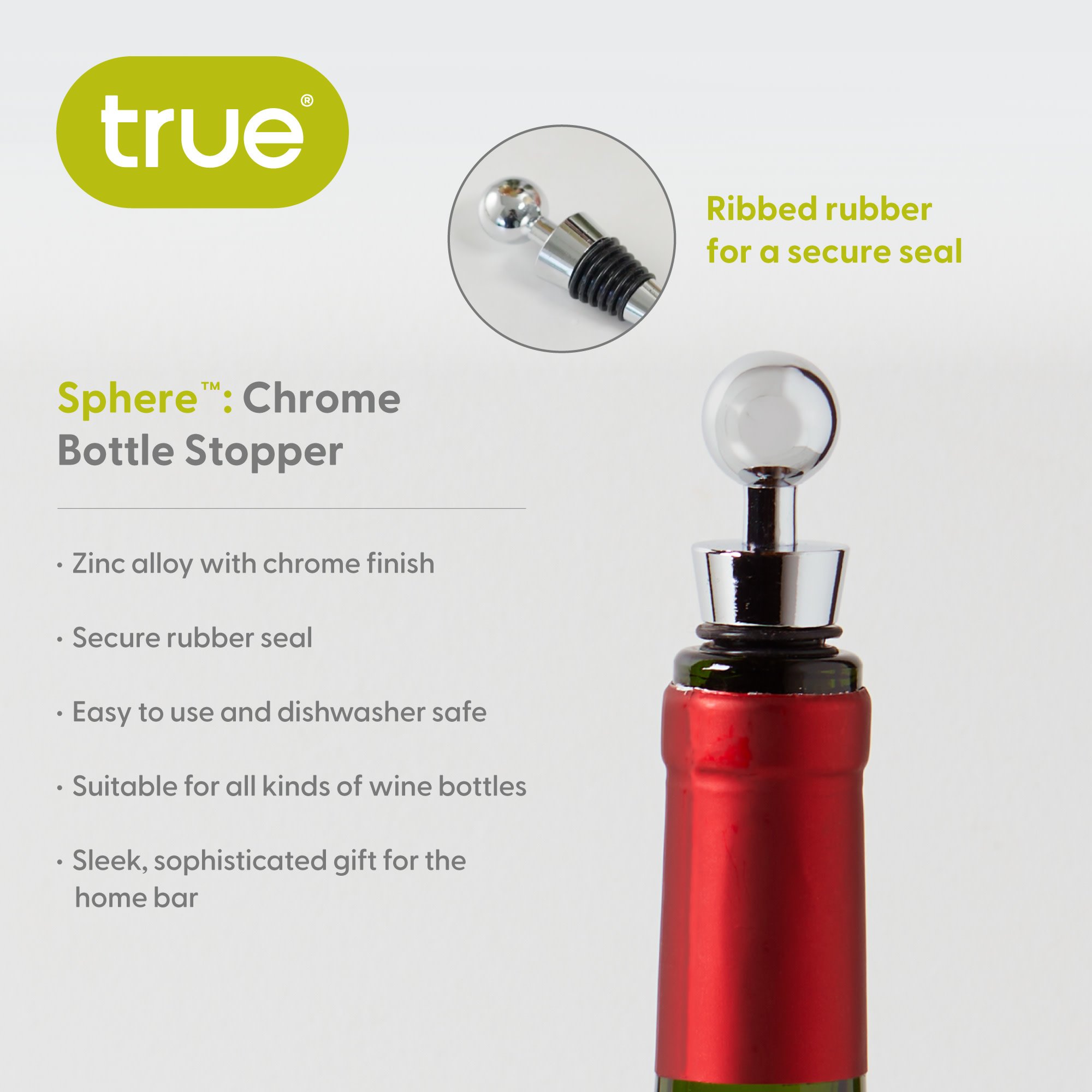 • ELEGANT DESIGN - Crafted from zinc alloy with a chrome finish, our Sphere Bottle Stopper adds a touch of sophistication to your wine accessories for wine lovers and wine toppers for wine bottles collection