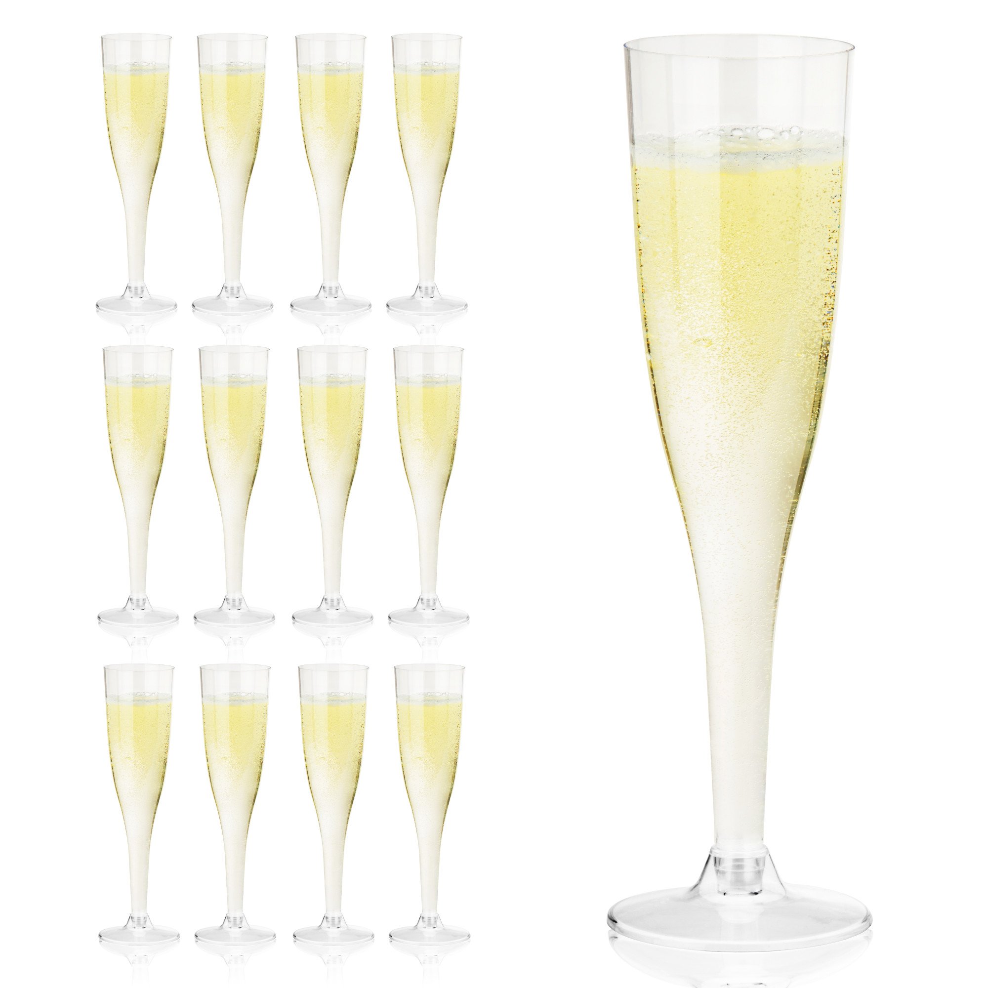 • STEMMED PLASTIC CHAMPAGNE GLASSES - These clear plastic champagne flutes are a great upgrade from red plastic cups. Shaped like a tall stemmed sparkling wine glass, this 12 piece set of plastic stemware is sure to be a hit at any barbecue or picnic.