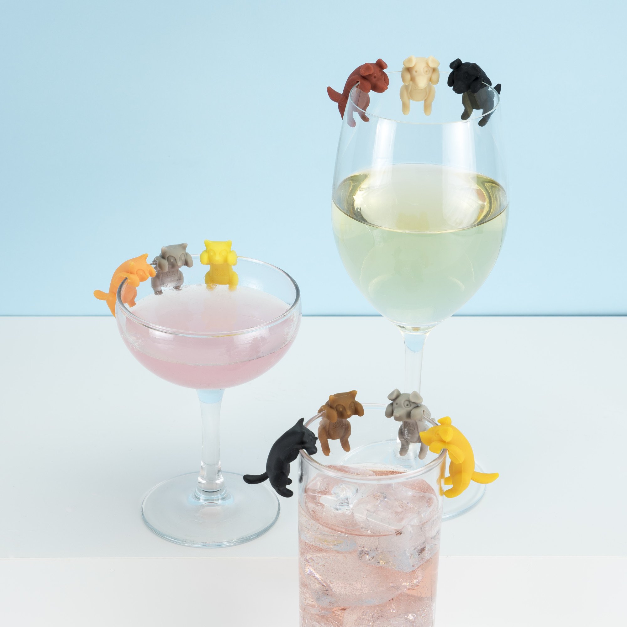 With one of these kitties perched on your glass rim, you'll always know which glass is yours! These silicone friends are always curious to see what's in your cup, whether it's wine, beer, cocktails, juice, or milk. With 6 different markers, there's enough cattitude to go around. Includes 6 1.25″ cat wine charms. Made from dishwasher-safe silicone. Fits on glasses, cans, and stemware.