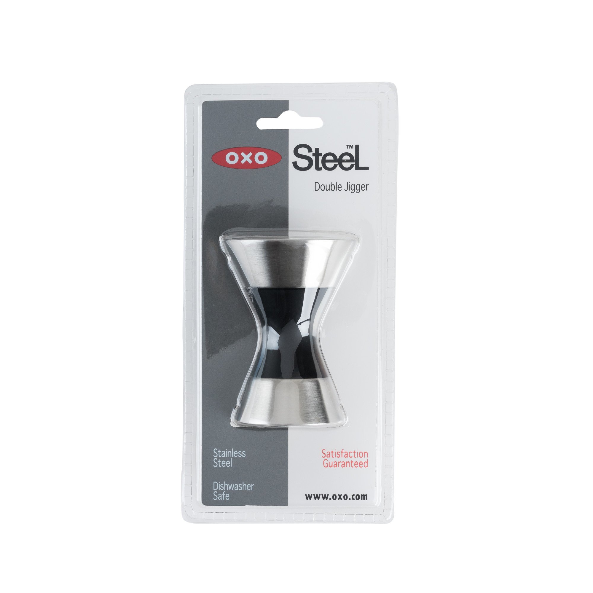The OXO Double Jigger does sextuple duty, with one side that measures 1/3 oz, 3/4 oz and 1 1/2 oz (a jigger), while the other side measures 1/4 oz, 1/2 oz and 1 oz. The soft, non-slip grip wraps around the durable stainless steel body for comfortable pouring.