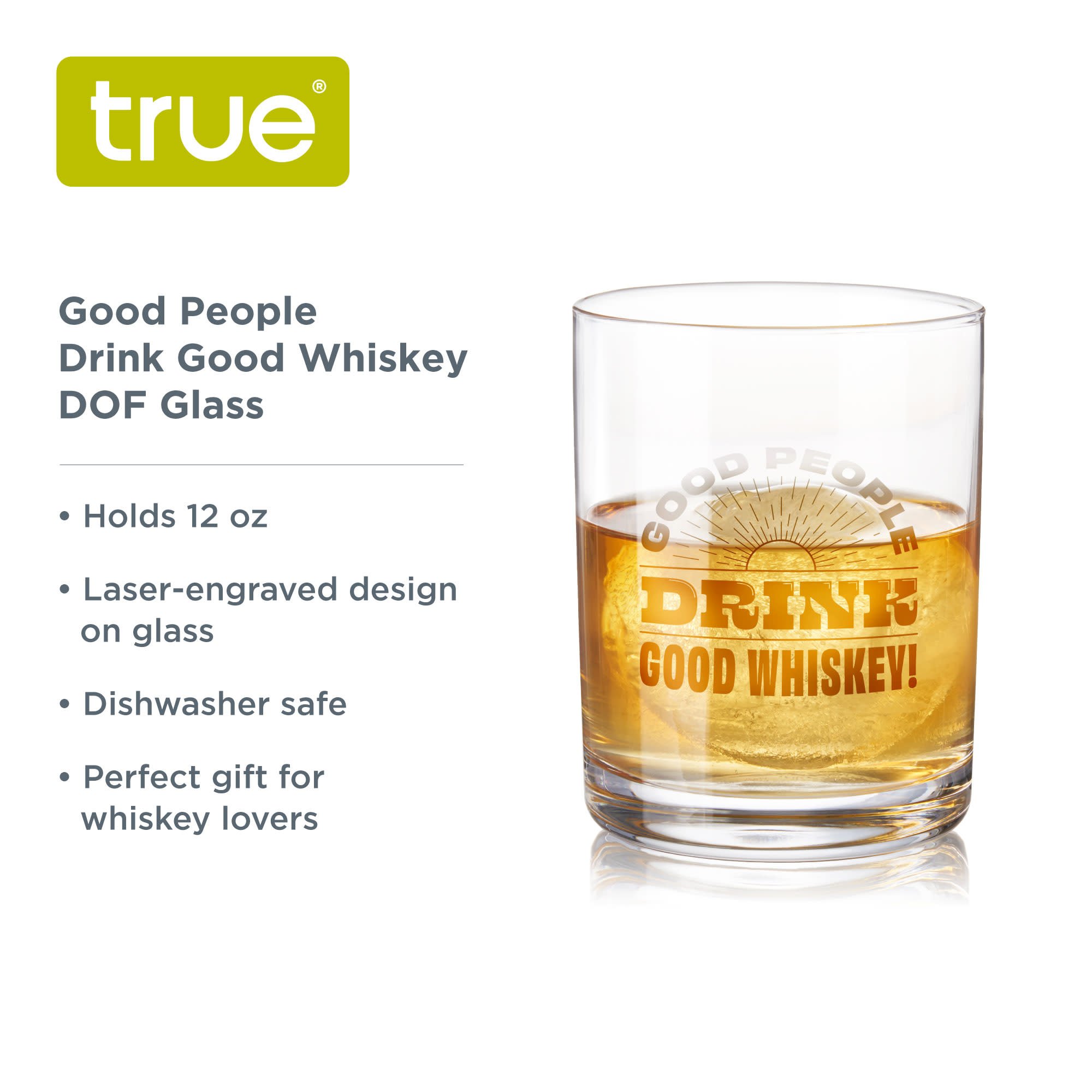 • OLD FASHIONED COCKTAIL GLASSES WITH PERSONALITY - The old fashioned cocktail glasses shape is timeless. And with a clever reminder engraved on the glass: Good People Drink Good Whiskey—you can declare your allegiance to top shelf bourbon.