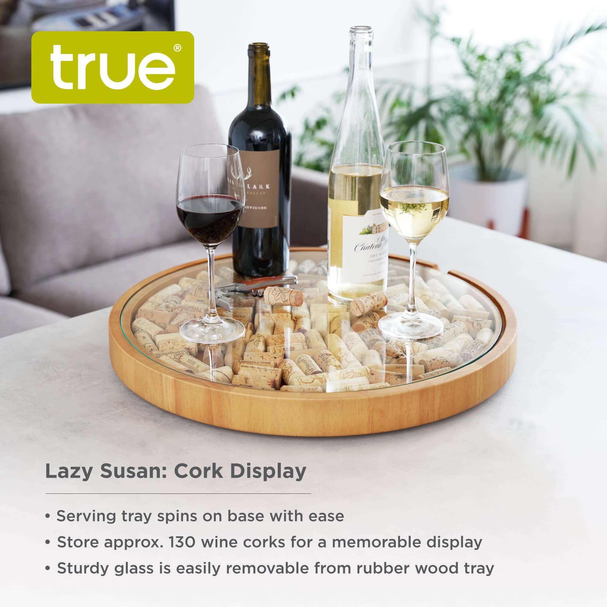 • DISPLAY YOUR CORK COLLECTION - This tabletop lazy susan is perfect for displaying the corks from your favorite vintages. Collect wine corks and show them off with this wooden and glass mini display case.