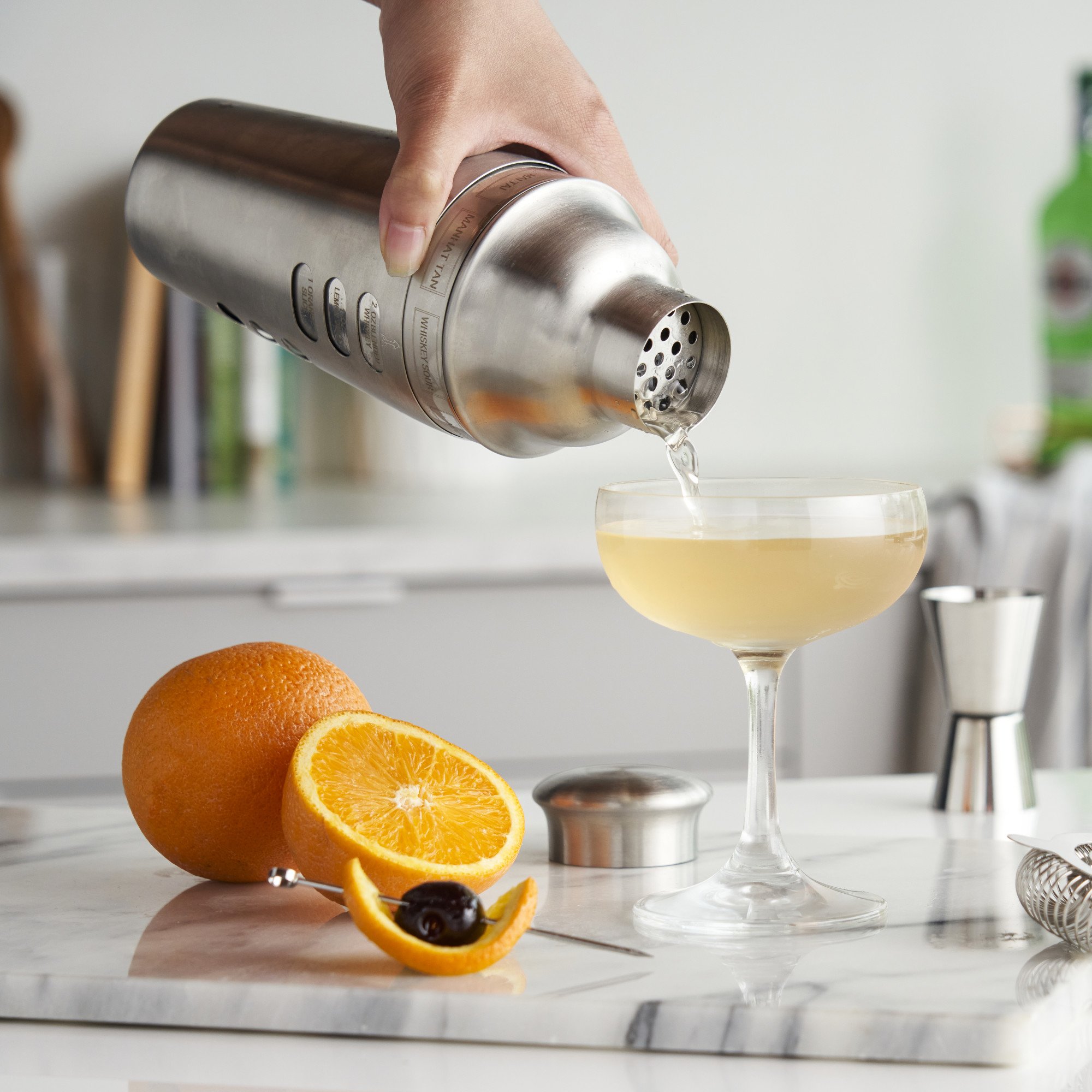 This elevated recipe shaker will ensure that you’re always ready to bartend and look good doing it. With 8 classic cocktail recipes printed directly on the shaker, just rotate the outer wall to reveal the ratios.