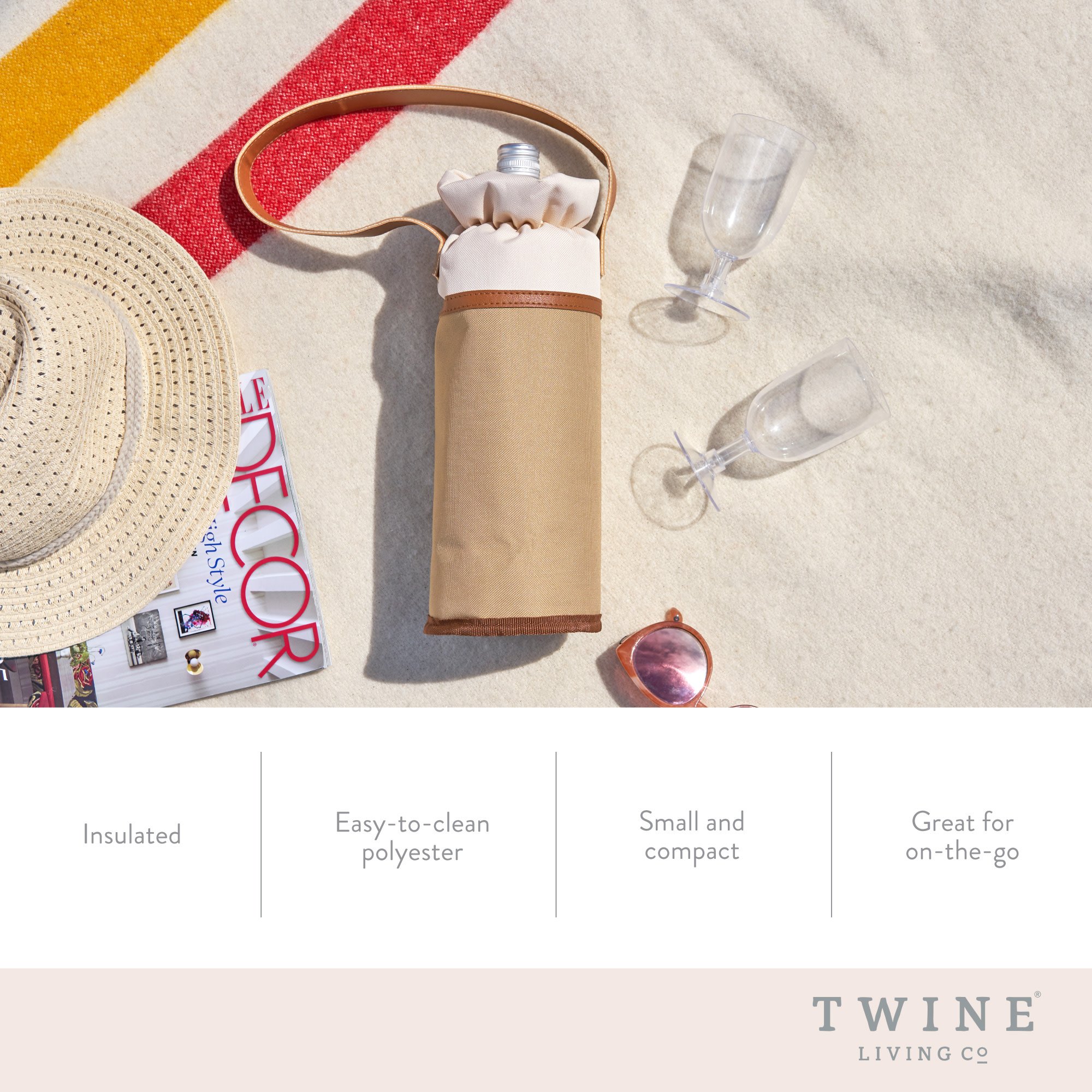 Meet your new favorite picnic accessory from Twine, an insulated single wine bag crafted for the wine enthusiast on the go! This wine carrying bag, designed in a classic tan color, offers the perfect blend of style and functionality. Made from durable polyester with an insulated liner, it keeps your wine or any other cold beverage at the perfect temperature, no matter how hot the summer sun. It's a wine carrier, a wine tote, and a wine cooler all in one! The Twine insulated wine bag isn't just for the wine connoisseurs, it's for anyone who enjoys a cold drink outdoors. This single bottle cooler bag is a cooler substitute that anyone who likes to travel or go to the beach will appreciate. This insulated wine carrier is more than just a wine tote bag. It's a stylish and practical accessory that can accompany you on any adventure. Enjoy the convenience of a travel wine bag, the style of a wine bag tote, and the practicality of a wine bottle carrier tote. This insulated wine tote bag is the ultimate companion for your wine, bag, tote, insulated, bottle, carrier, travel, carriers, totes, single, cooler, carrying, holder, picnic adventures!