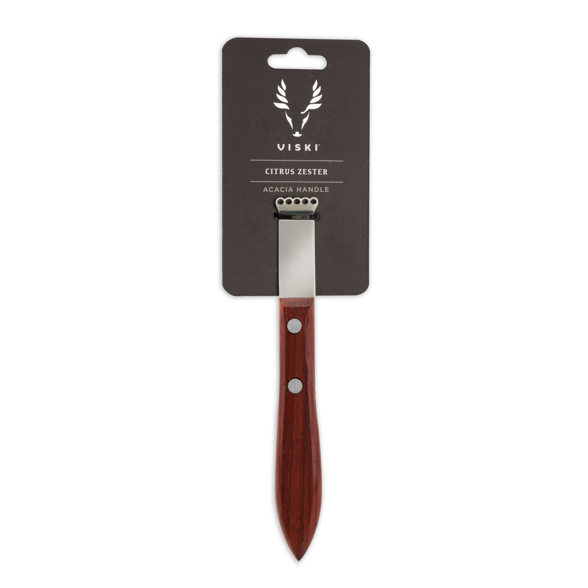 • WOOD HANDLED CITRUS ZESTER - With a warm, natural acacia wood handle and sturdy stainless steel blade, this stainless steel citrus zester is useful and beautiful. Upgrade your kitchen tools or barware with this classic citrus peeler.