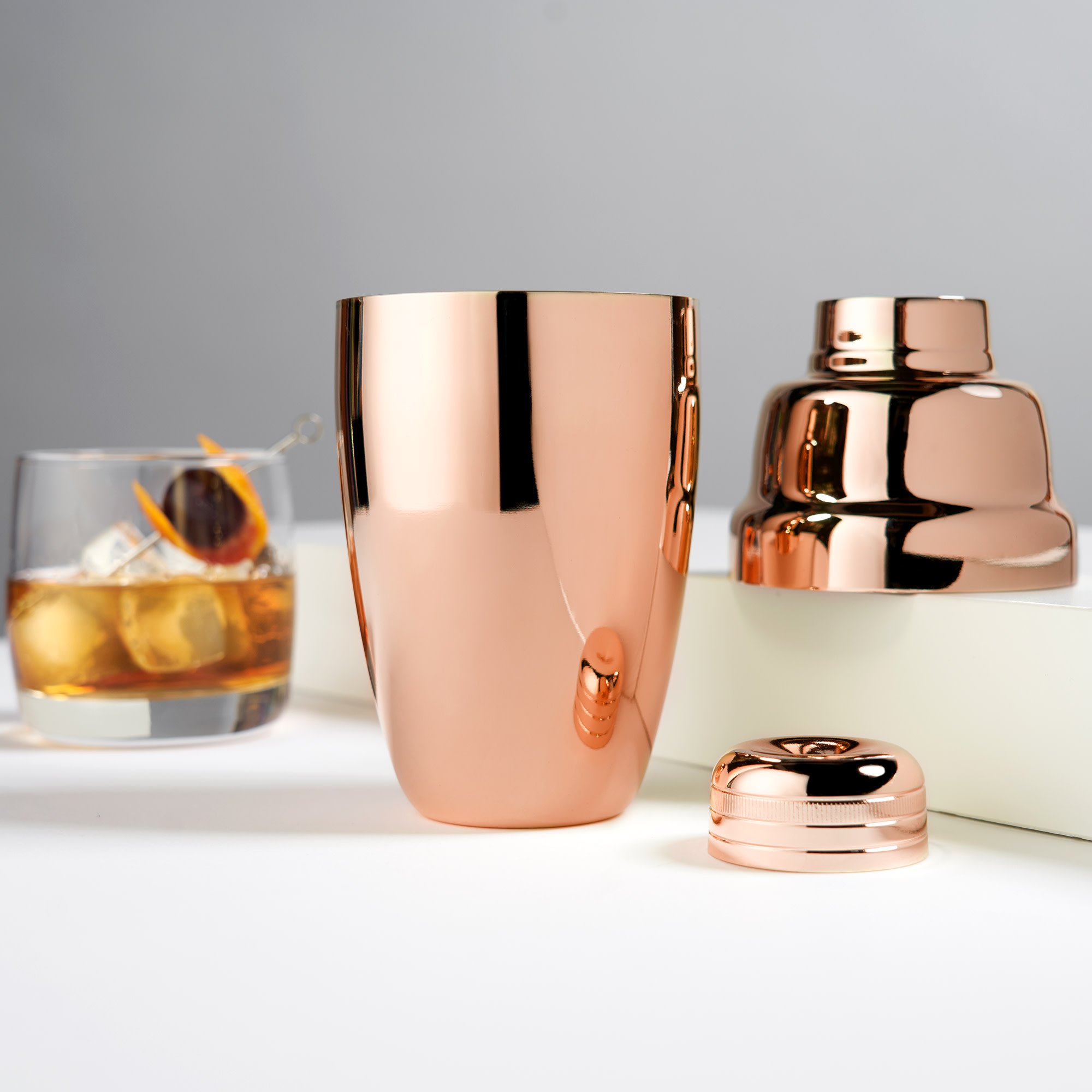 • QUALITY FINISH - With 1.35 mm thick walls and polished copper plating, this professional-grade bartending tool with a built in strainer ensures high functionality. Shake it like a professional mixologist with this nicely weighted shaker.