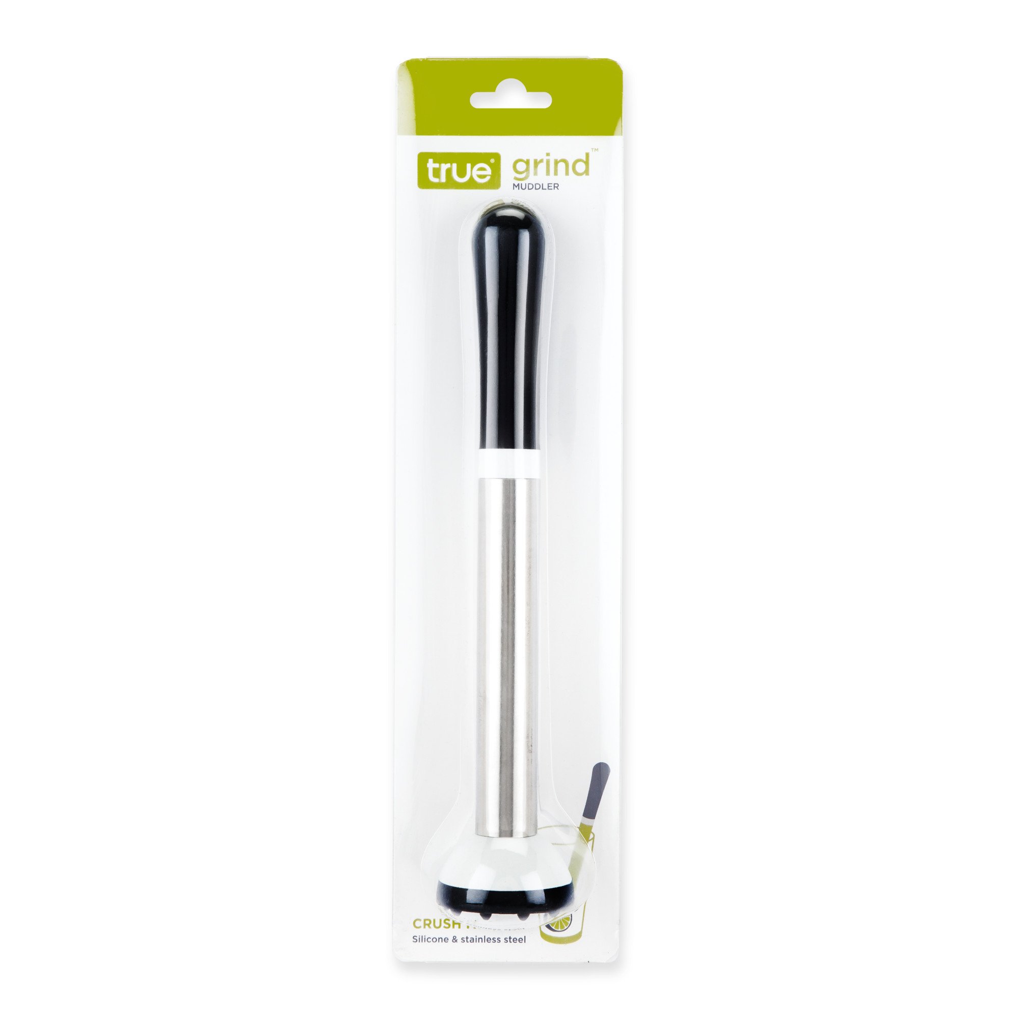 Elevate your home barware collection with the Grind Cocktail Muddler from True. This essential kitchen bar tool is perfect for crafting delicious cocktails right in the comfort of your own home. It's an indispensable part of your bar cart accessories and an essential tool for any aspiring bartender. This stainless steel and food-safe silicone muddler is designed to expertly grip and crush citrus fruits, berries, spices, and herbs quickly and efficiently, releasing their full range of flavors. It's perfect for mixing up a classic mojito or mint julep, or for inventing your own concoction. The teeth at the base make quick work of citrus rinds or herbs, a feature that sets it apart from other barware essentials. The Grind Cocktail Muddler is not just a bar tool, it's a must-have among bar accessories for the home bar set. Enhancing your home bar accessories collection, and is suitable for both professional and novice bartenders. In addition to its functionality, the Grind Cocktail Muddler offers a sleek, modern design that will complement any kitchen bar decor. It's more than just a tool - it's a stylish addition to your bar stuff and bartending accessories.