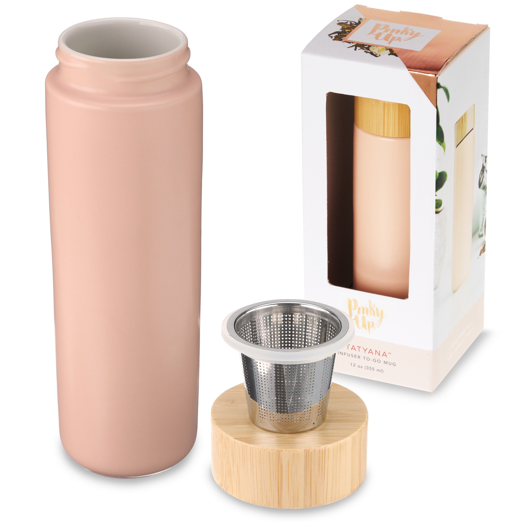 • BEAUTIFUL CERAMIC MUG WITH TEA INFUSER - The slim, sleek design of the Tatyana travel tea cup with infuser and lid makes it comfortable to hold and keeps your favorite tea piping hot. The stainless steel infuser cup is easy to use and easy to clean.
