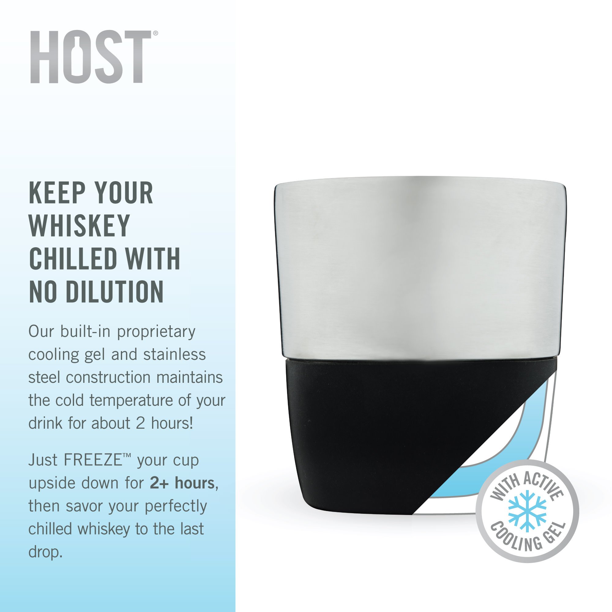 • KEEP WHISKEY CHILLED WITH NO DILUTION - Bourbon and scotch benefit from a well-designed drinking experience. The Host Whiskey FREEZE Pro cocktail glasses are engineered specifically to keep whiskey chilled without watering it down.