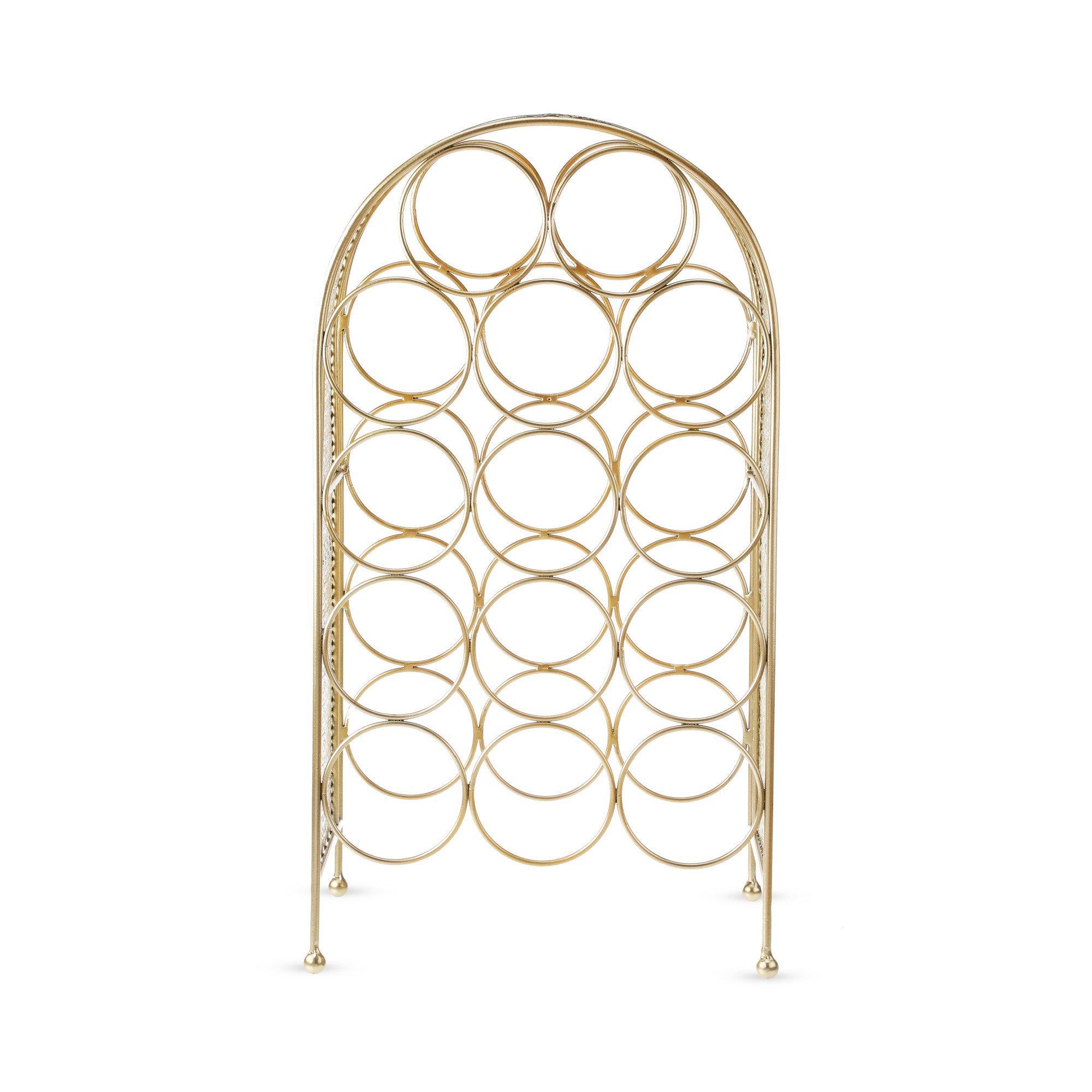 • GOLD & GLAM DECOR - This wine storage solution fits in with contemporary homes or retro decorations. Shining gold rings cradle your best vintages, while the delicate frame brings vintage glamour to your home bar. Holds 14 standard wine bottles.
