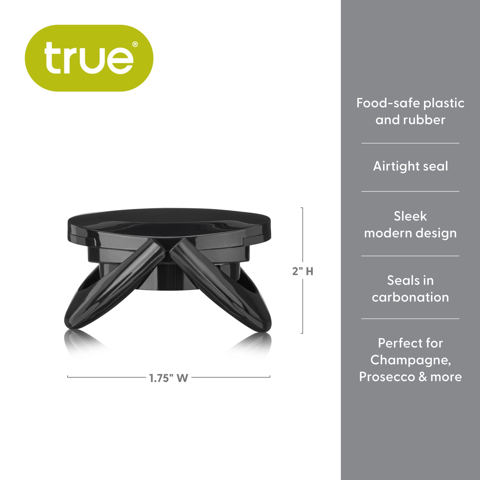 • SPARKLING WINE STOPPER SAVER - Crafted from durable food-safe plastic with an inner rubber seal, this black bottle stopper keeps the bubbles from dissipating. It easily fits standard champagne and beer bottles so you can enjoy drinks longer.