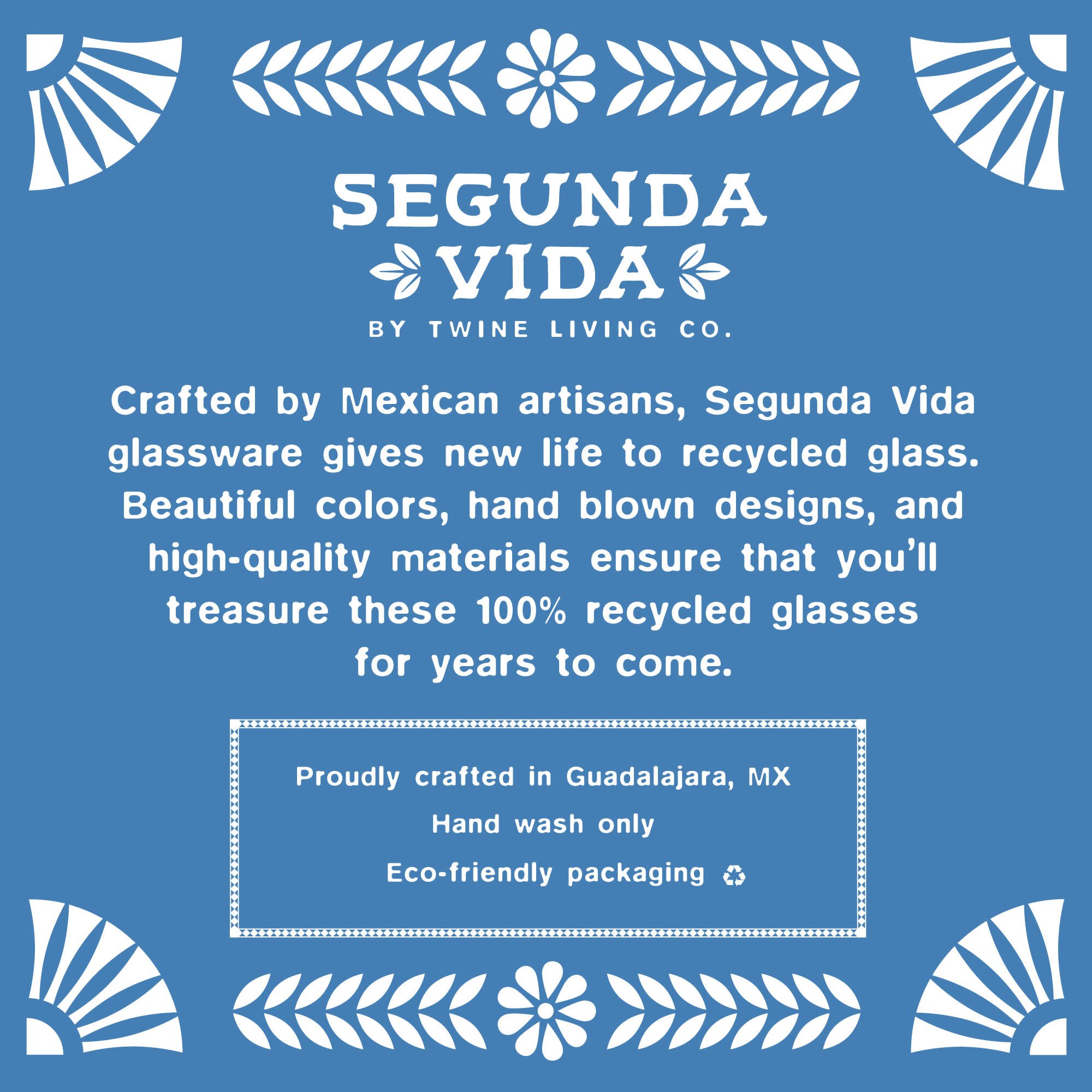 • HANDCRAFTED RECYCLED GLASSWARE - Crafted by Mexican artisans, Segunda Vida glassware gives new life to recycled glass. Beautiful colors, hand-blown designs, and high-quality materials ensure that you’ll treasure these pieces for years to come.