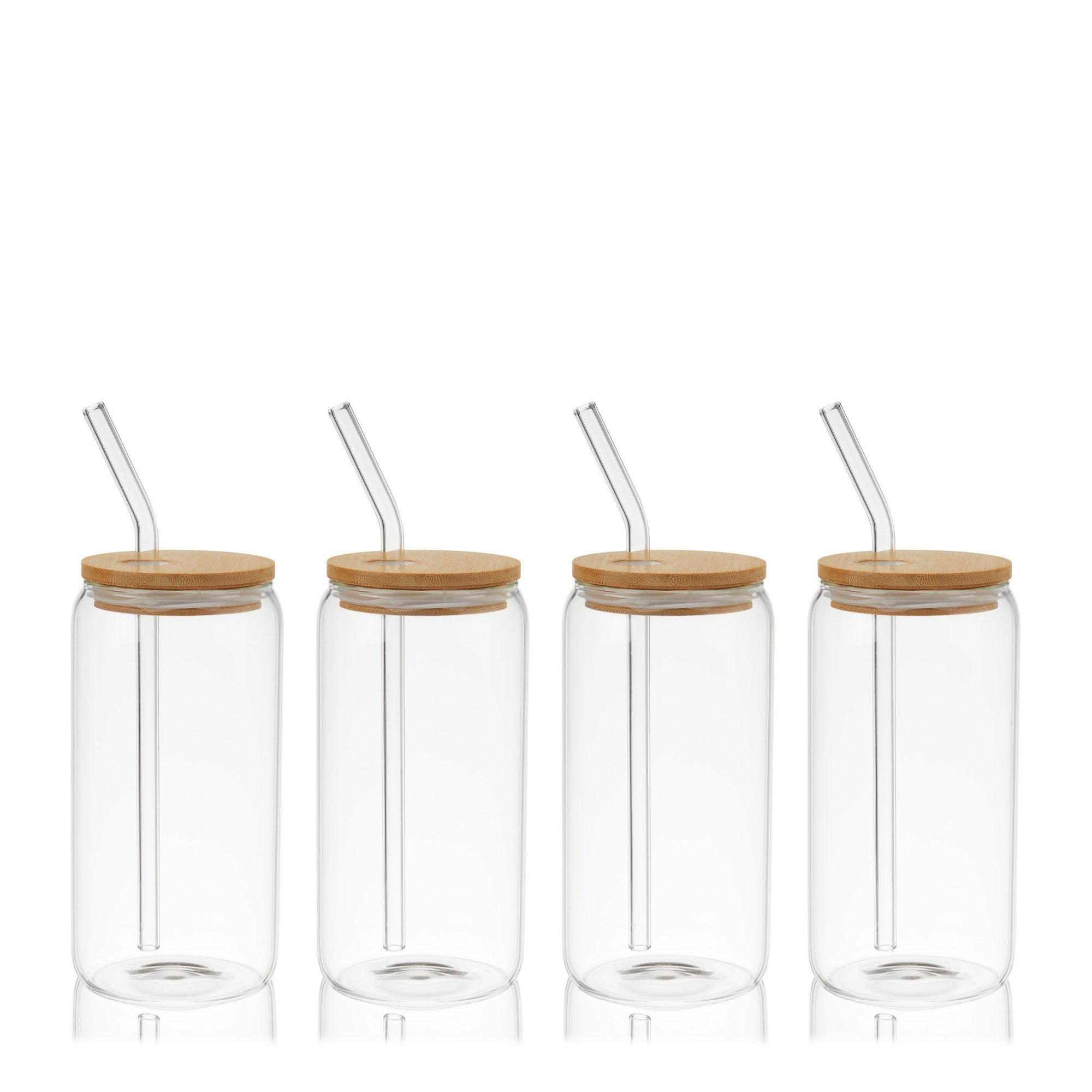 • 16 OZ GLASS CUP WITH BAMBOO LID AND STRAW - These drinking glasses set of 4 have a streamlined design and straw cleaning brush. Made of glass, these clear cups with lids and straws are a great alternative to a plastic iced coffee tumbler with straw.