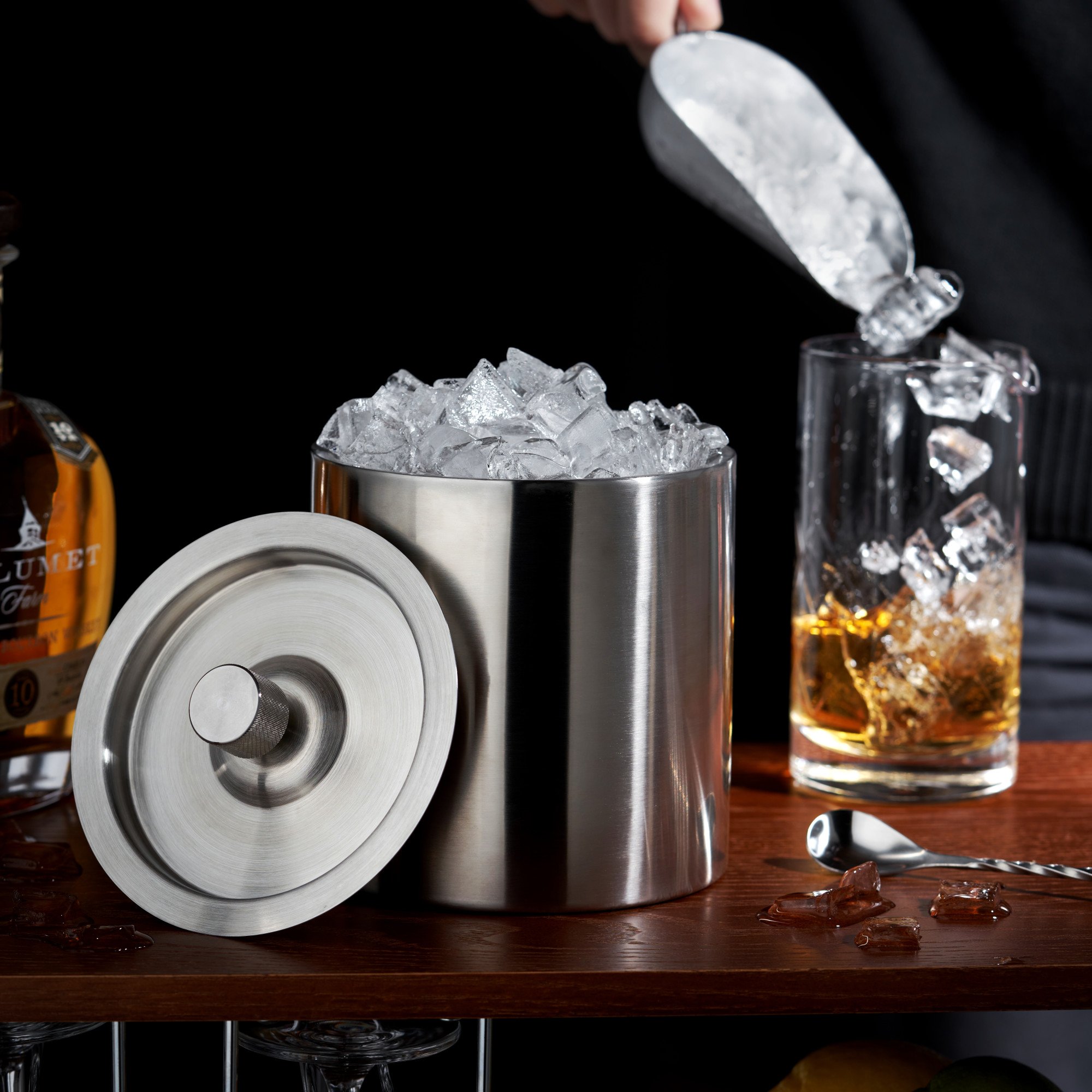 • DISHWASHER SAFE BARWARE: Made of durable double-walled stainless steel, this party ice bucket is dishwasher-safe for easy cleaning. This 2L large ice bucket with lid keeps ice clean and cold throughout your cocktail party.