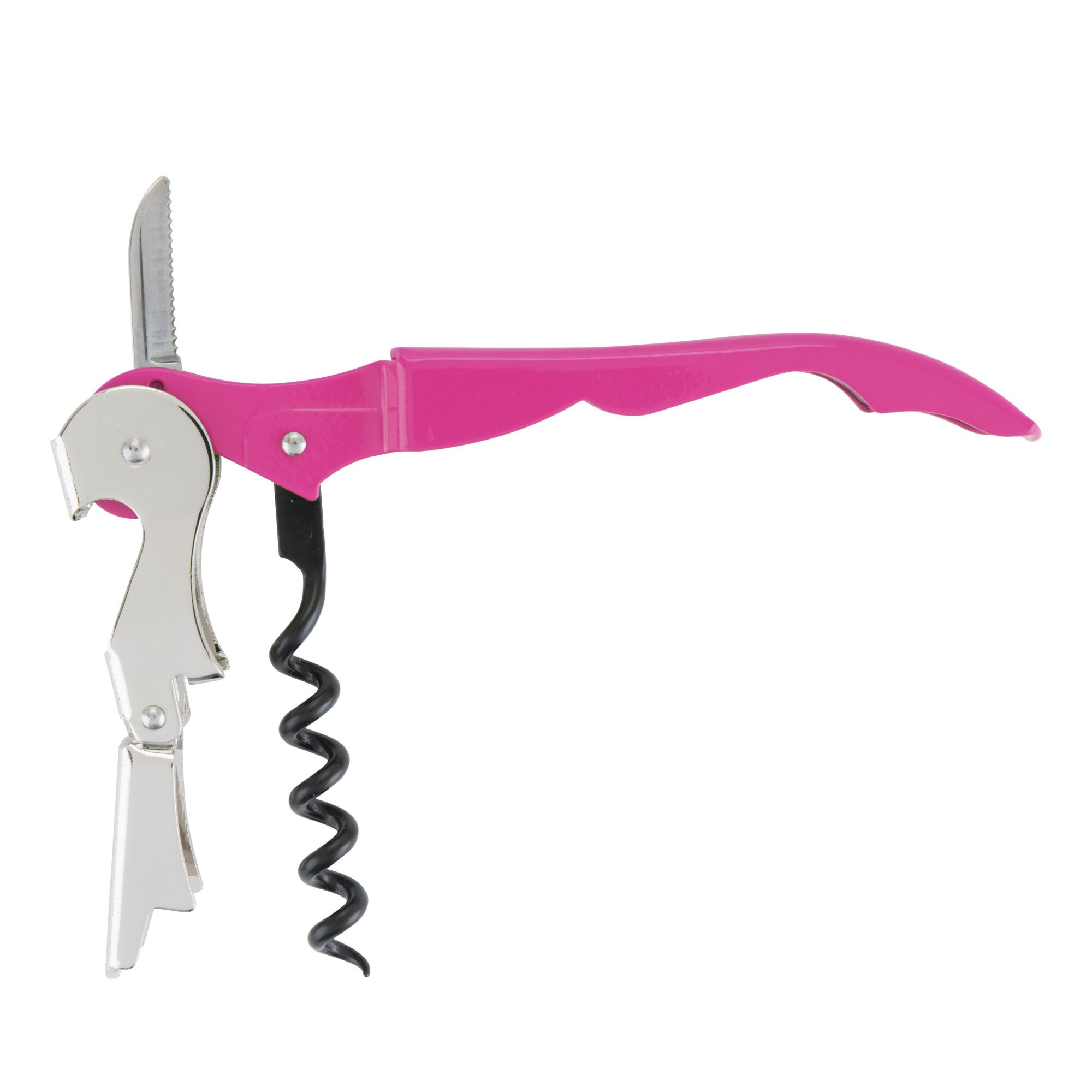 • THE EVERYDAY WINE KEY - Where form meets function. Our double-hinged waiter's corkscrew sports a bottle opener, serrated wine bottle foil cutter, 5-turn non-stick worm, and bright pink finish. This corkscrew belongs on your bar cart.