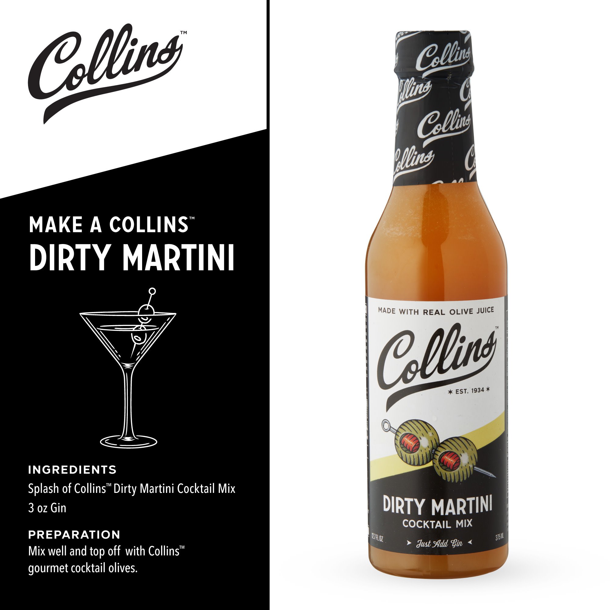 • NEVER RUN OUT OF OLIVE BRINE FOR DIRTY MARTINIS AGAIN! - Collins Dirty Martini mix is the perfect complement to your favorite gin or vodka when you are ready to enjoy a classic dirty martini. Achieve the flavor you want every time, with no fuss.