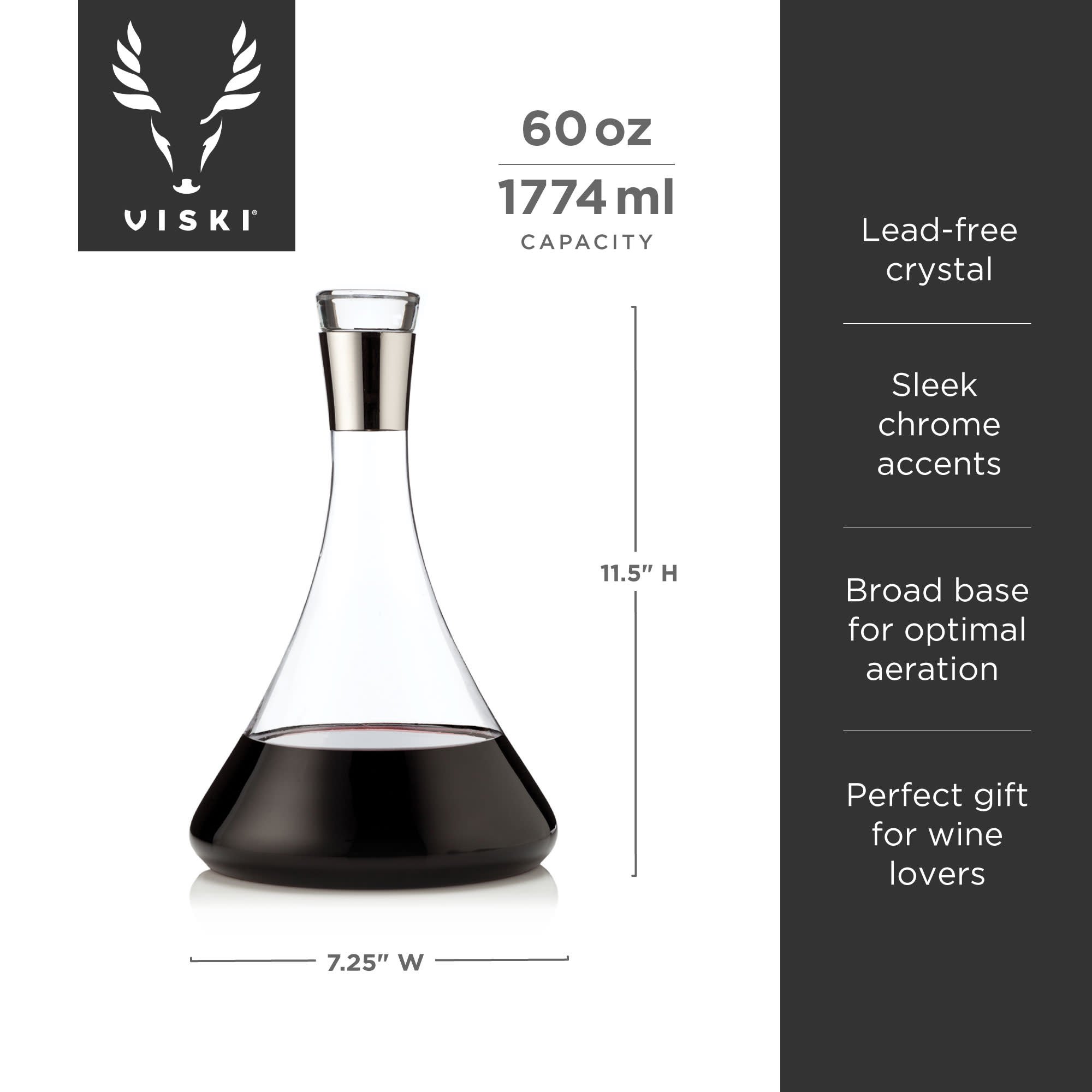 • CHROME RIM WINE DECANTER - Modern angles and chrome accents give this Viski decanter a sleek, minimalist look with extra sparkle. Bring contemporary flair to your wine service and the best out of your finest vintages. Suitable for red and white wine.