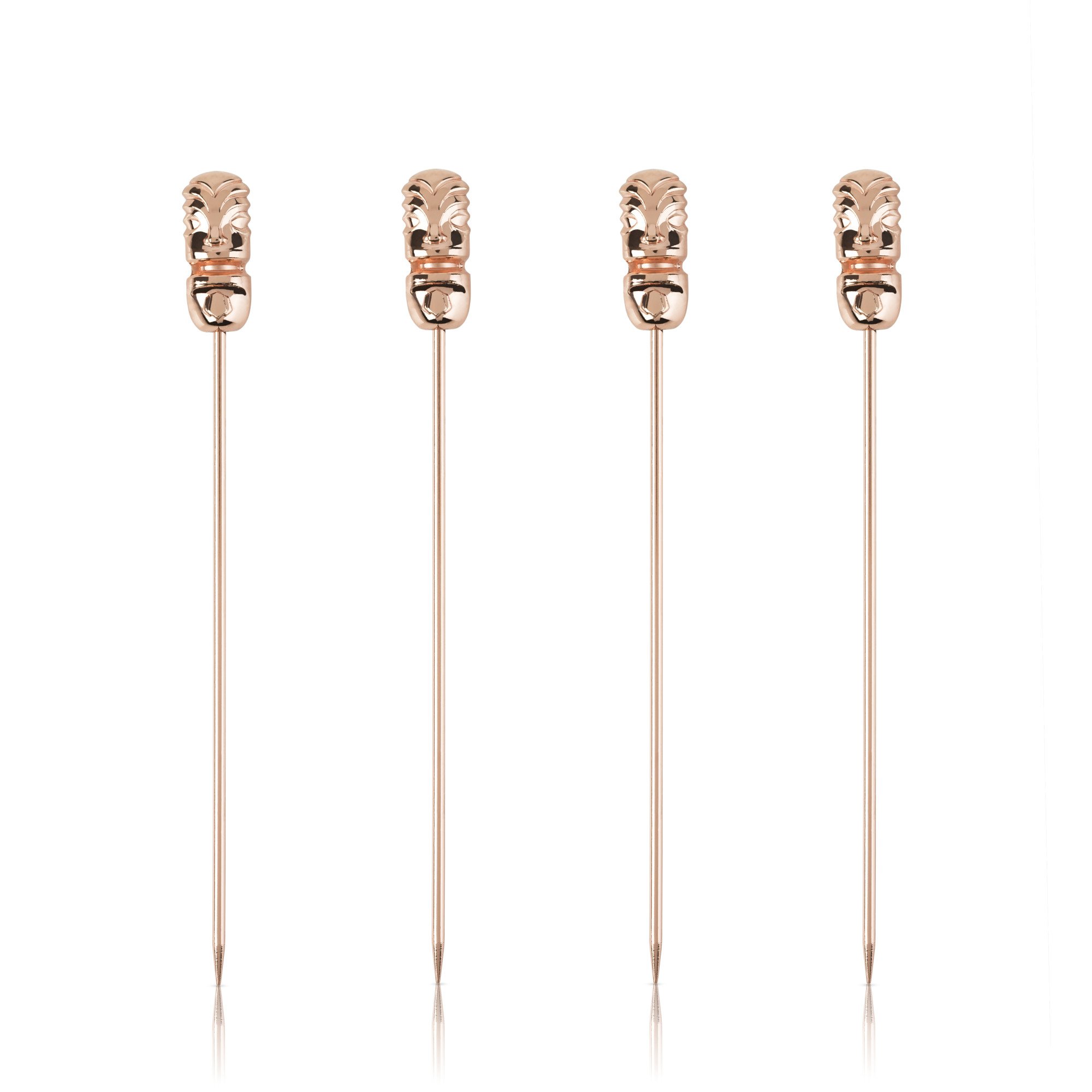 • MODERN TIKI COCKTAIL PICKS - Make your drinks look stylish with sleek, stunning polished copper metal cocktail picks for drinks. Perfect for parties or enjoying drinks on your own, these drink garnish picks shine with a tiki design and copper finish.