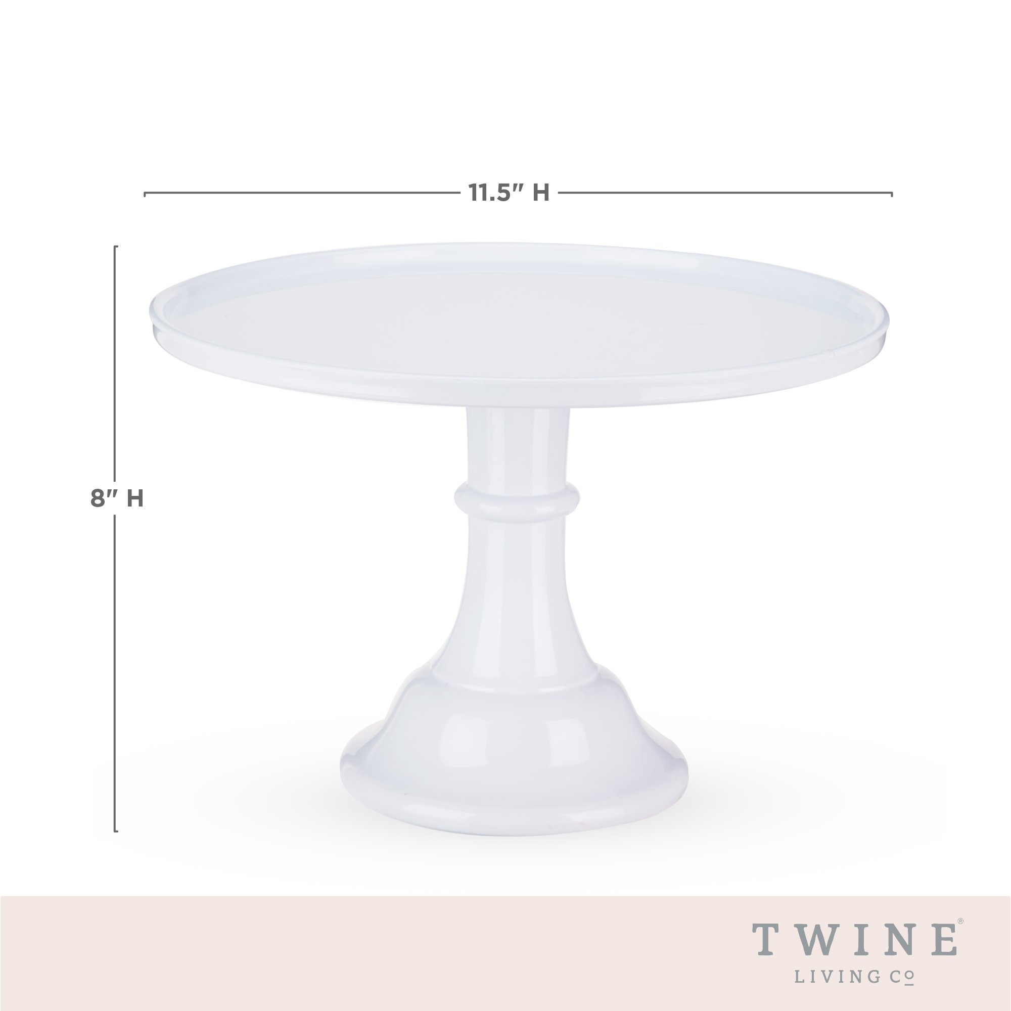 • CLASSIC CAKESTAND STYLE IN WHITE - Create a functional centerpiece that looks great while also letting the dessert speak for itself. Easily fits on tables as a cake centerpiece, or at buffet serving tables. 11.5 inches in diameter, 8 inches tall.