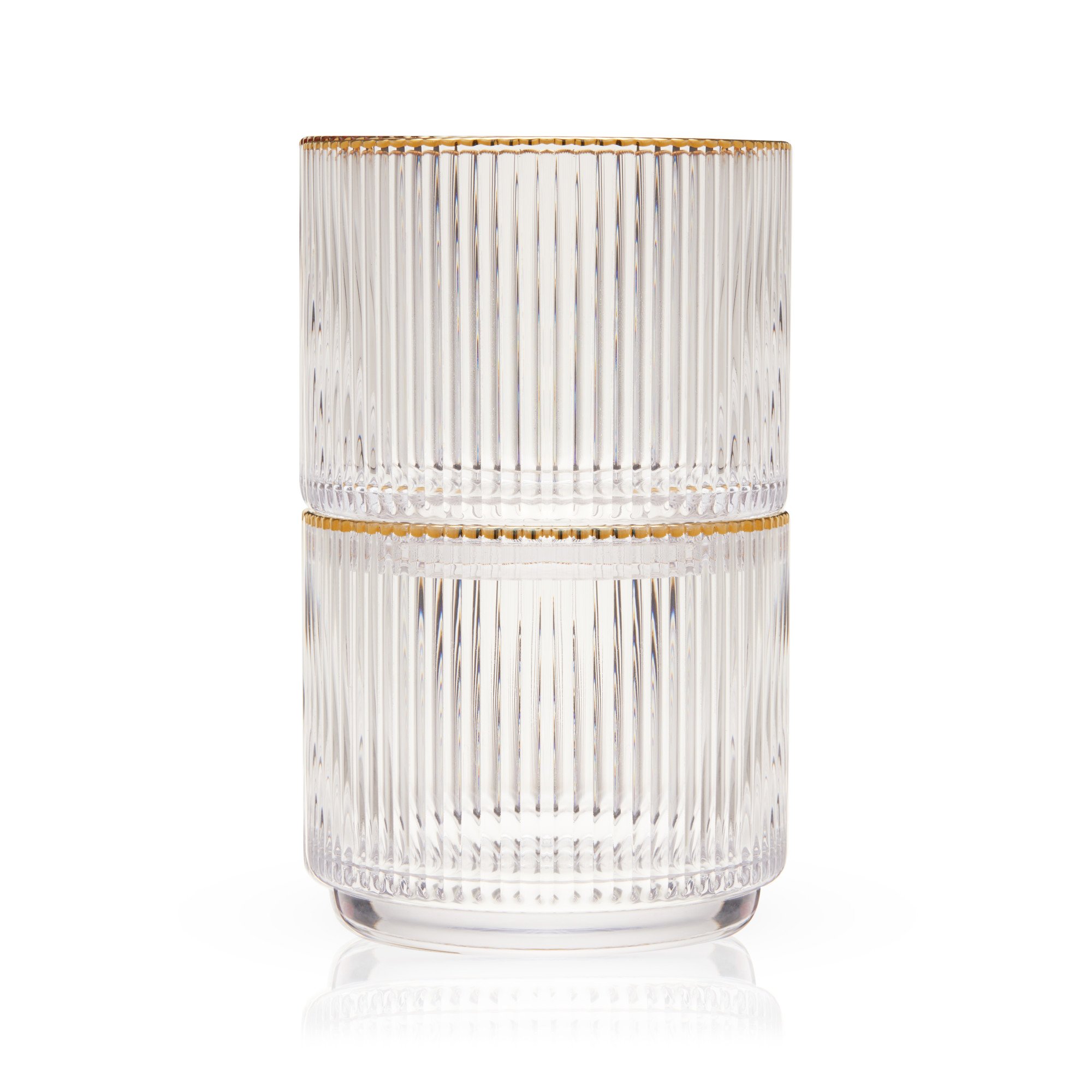 • RIPPLED TEXTURE & STACKABLE DESIGN - Elegant repeating vertical grooves and gold-dipped rims give this barware a luxurious look and feel. The geometric structure makes these glasses beautiful and stackable for easy storage.
