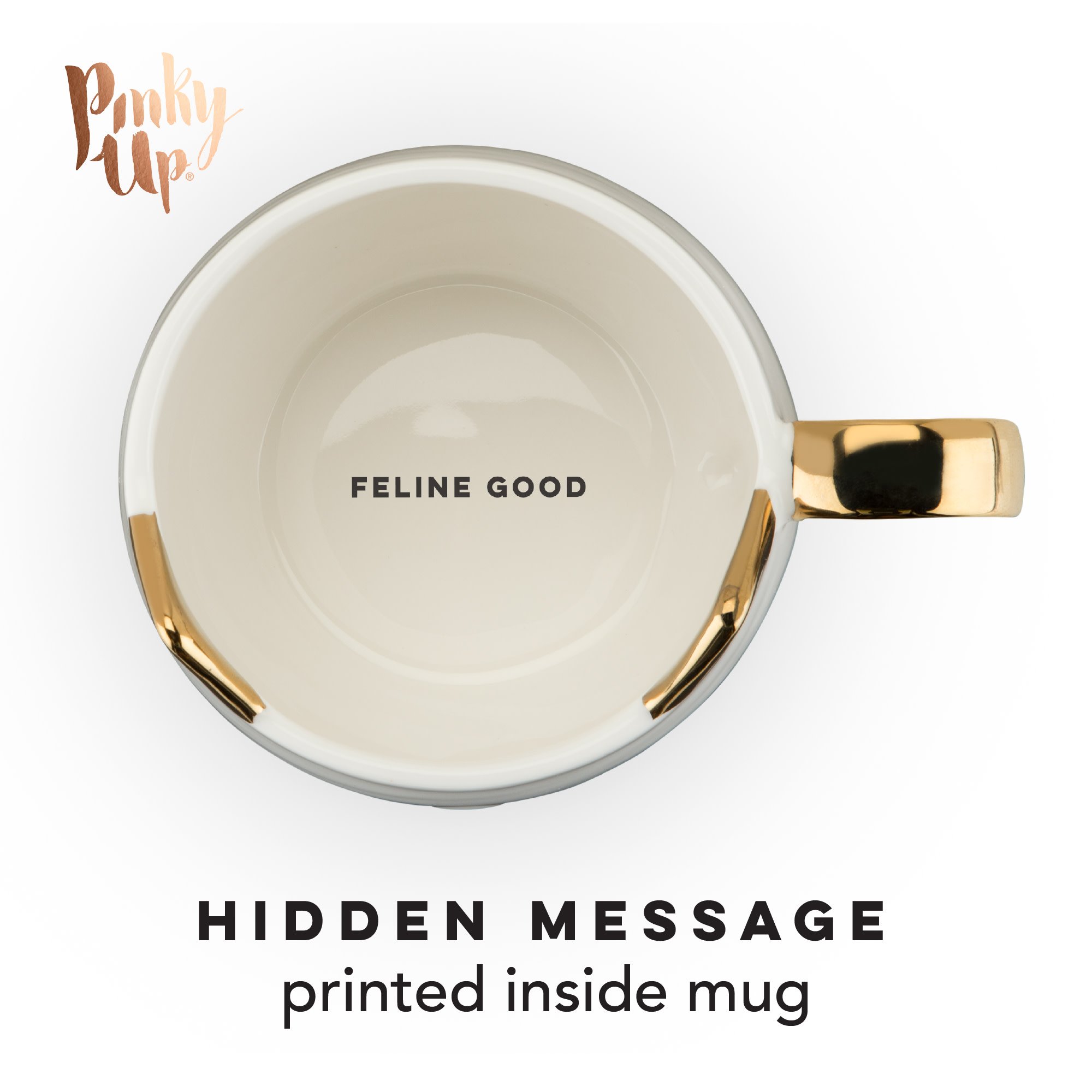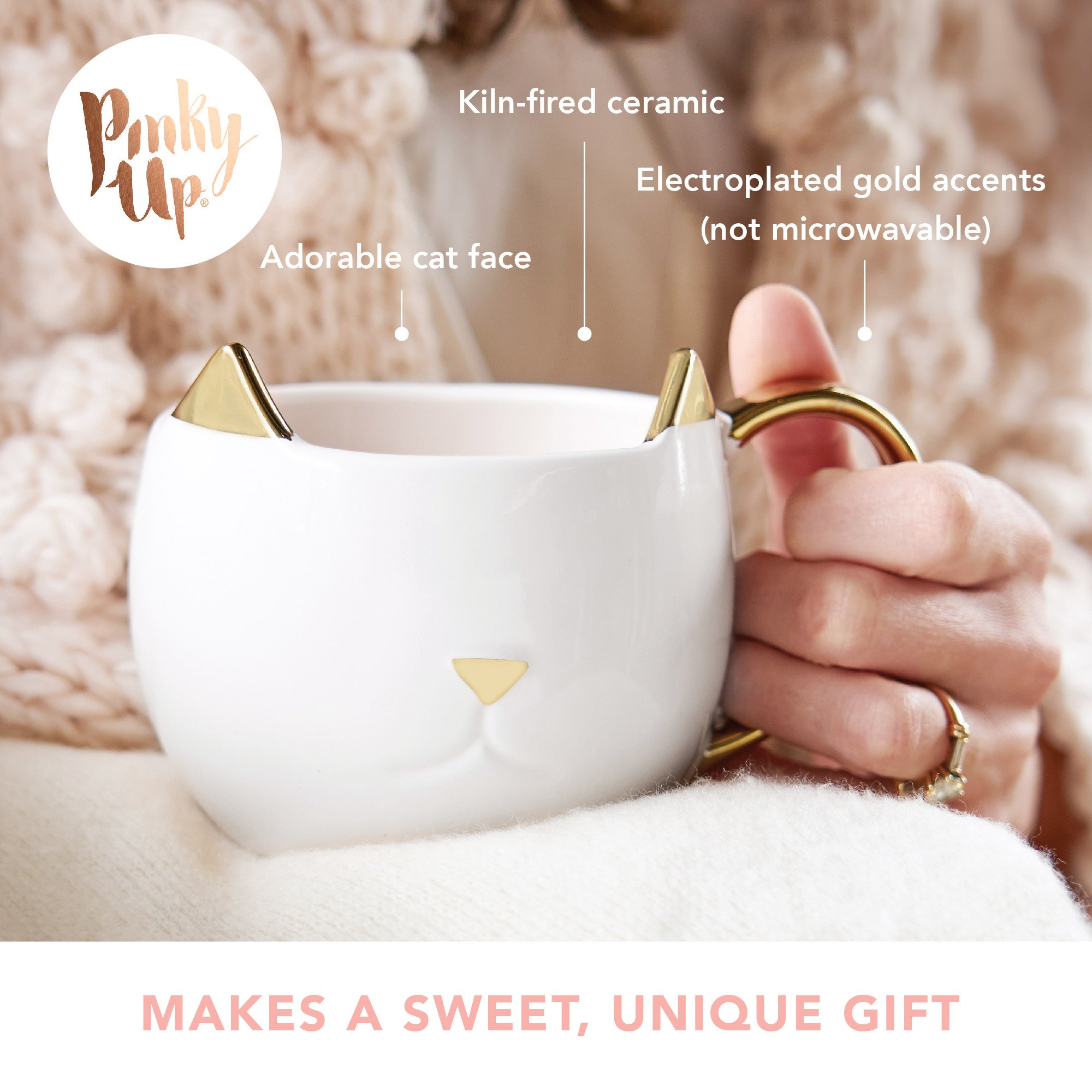 Elevate your home kitchen experience with Pinky Up’s Chloe White Cat Mug. Crafted from shiny white ceramic with metallic gold detailing, this cool coffee mug is a perfect blend of style and utility. The 3D cat design beautifully displays your love for cats, making it an ideal cat mugs choice. This cute coffee cups set of 1 has a capacity of 12 oz, enough to hold your preferred beverage, be it green coffee, hot cocoa, or black cocoa. This coffee mug with handle also hides a secret message at the bottom, adding a fun surprise to your morning routine. Ideal for the home office, this ceramic coffee travel mug can also serve as a latte cup, cappuccino cup, or tea mugs. It can also serve as a mom mug or coffee mugs for women due to its adorable design. Enjoy your hot drinks in style with this aesthetic mug cup. Whether it's a cup of black coffee in the morning, a green tea in the afternoon, or a hot cocoa in the evening, this ceramic mug is your purrrfect companion. Enjoy the comfort of drinking from this white coffee mug with a large handle.