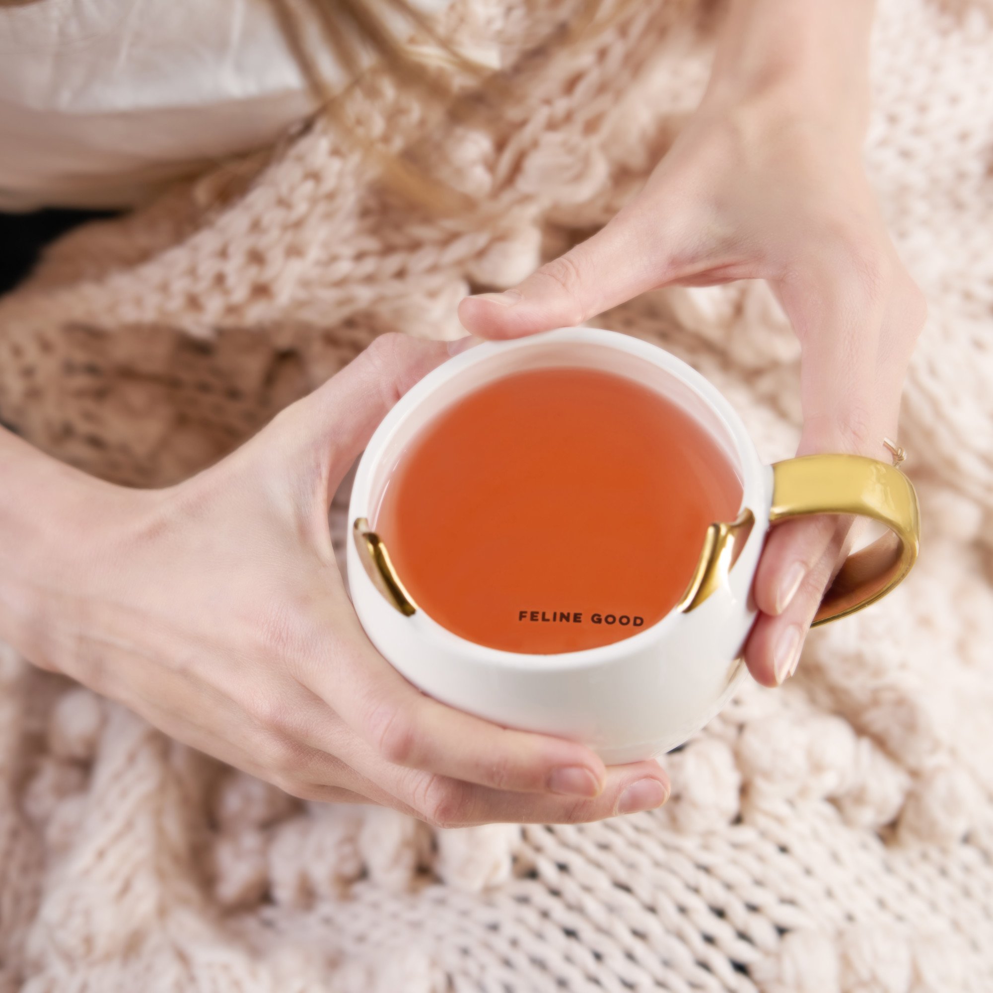 • ELEGANT CERAMIC MUG - Chloe White Cat 12 oz coffee mugs are exquisitely designed with shiny white ceramic and metallic gold detailing. Ideal for a hot cocoa treat, this cup with handle is a must-have in every home office.