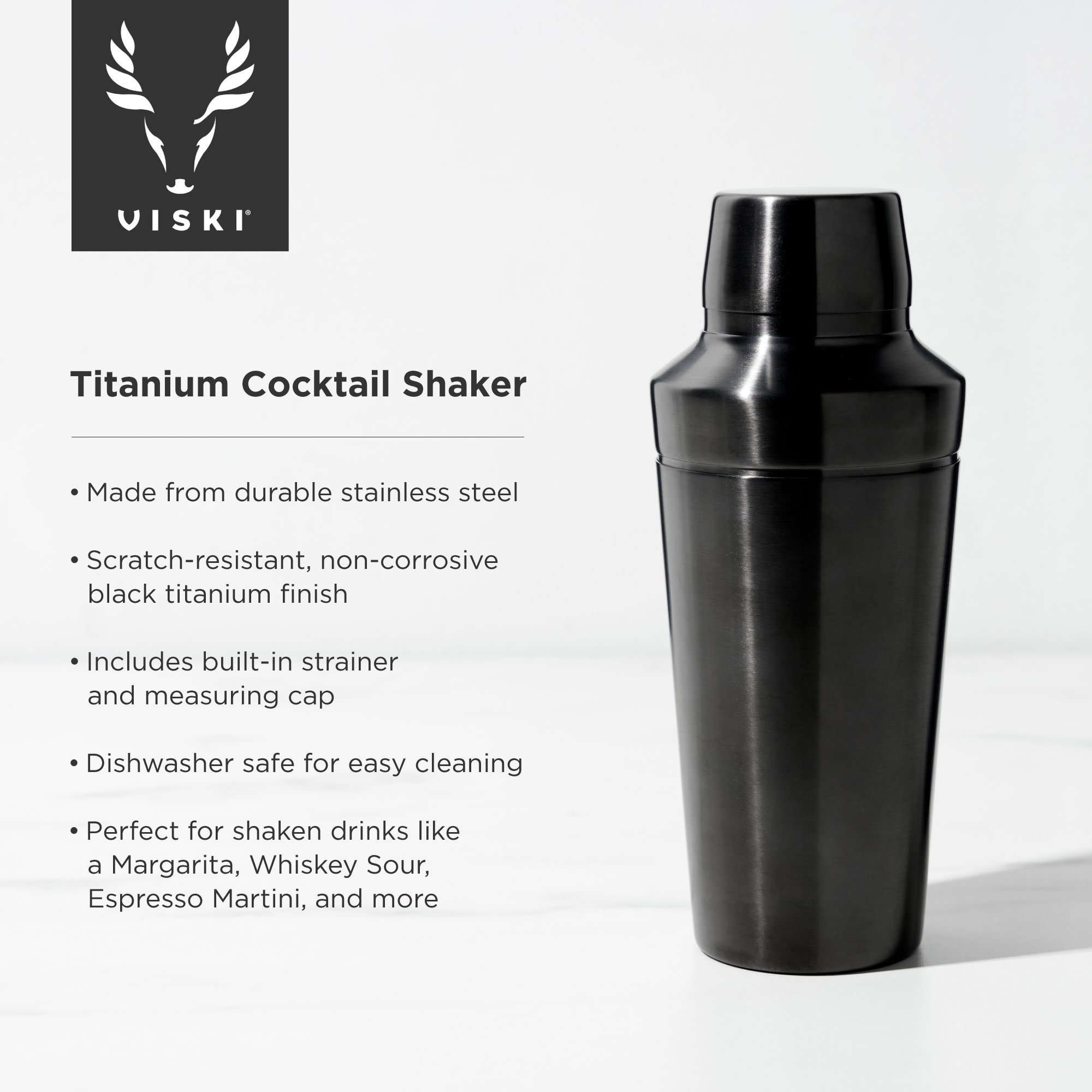 • HIGH-QUALITY TITANIUM FINISH - Stainless steel construction gets a vaporized titanium finish, making this cocktail shaker highly durable, scratch-resistant, and corrosion resistant. Invest in bar tools that are made to last a lifetime.