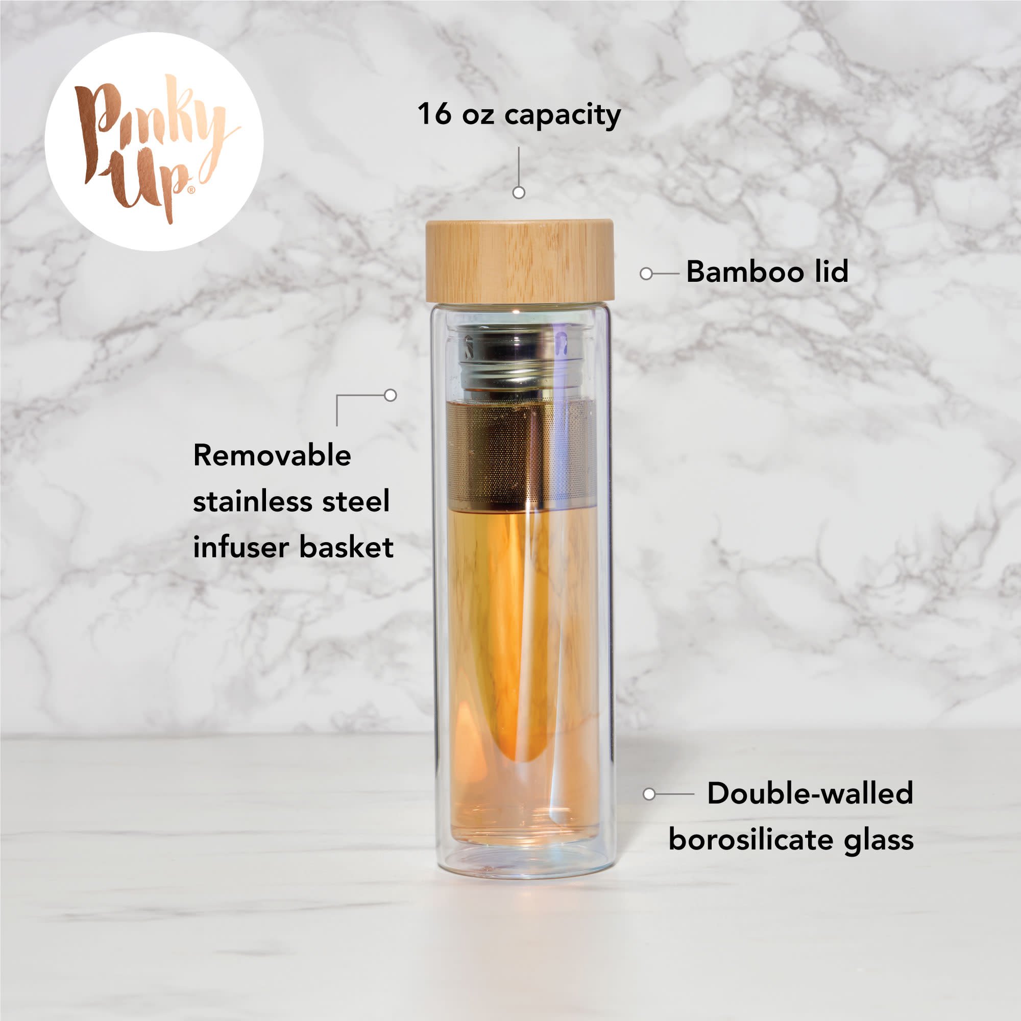Indulge in your favorite loose leaf teas anytime, anywhere with the Pinky Up tea travel mug with infuser and lid. This 16 oz double walled glass insulated tea mug travel ensures that your tea stays hot while keeping the outer surface cool to the touch. Whether you are a seasoned tea enthusiast or simply searching for the perfect item for tea lovers, this Pinky Up tea infuser water bottle is sure to impress with its practicality and style. Say goodbye to bland tea-drinking experiences and elevate your tea game with this loose leaf tea steeper mug. The tea infuser cup allows easy steeping of your favorite blends, while the included lid maintains tea freshness and warmth for longer periods. Explore the world of tea with these innovative hot tea accessories for tea drinkers. This travel tea mug with infuser and lid combines functionality and style to bring you the perfect tea essentials in one chic package. Treat yourself or a loved one to the ultimate tea-drinking experience with this versatile and stylish tea infuser travel mug.