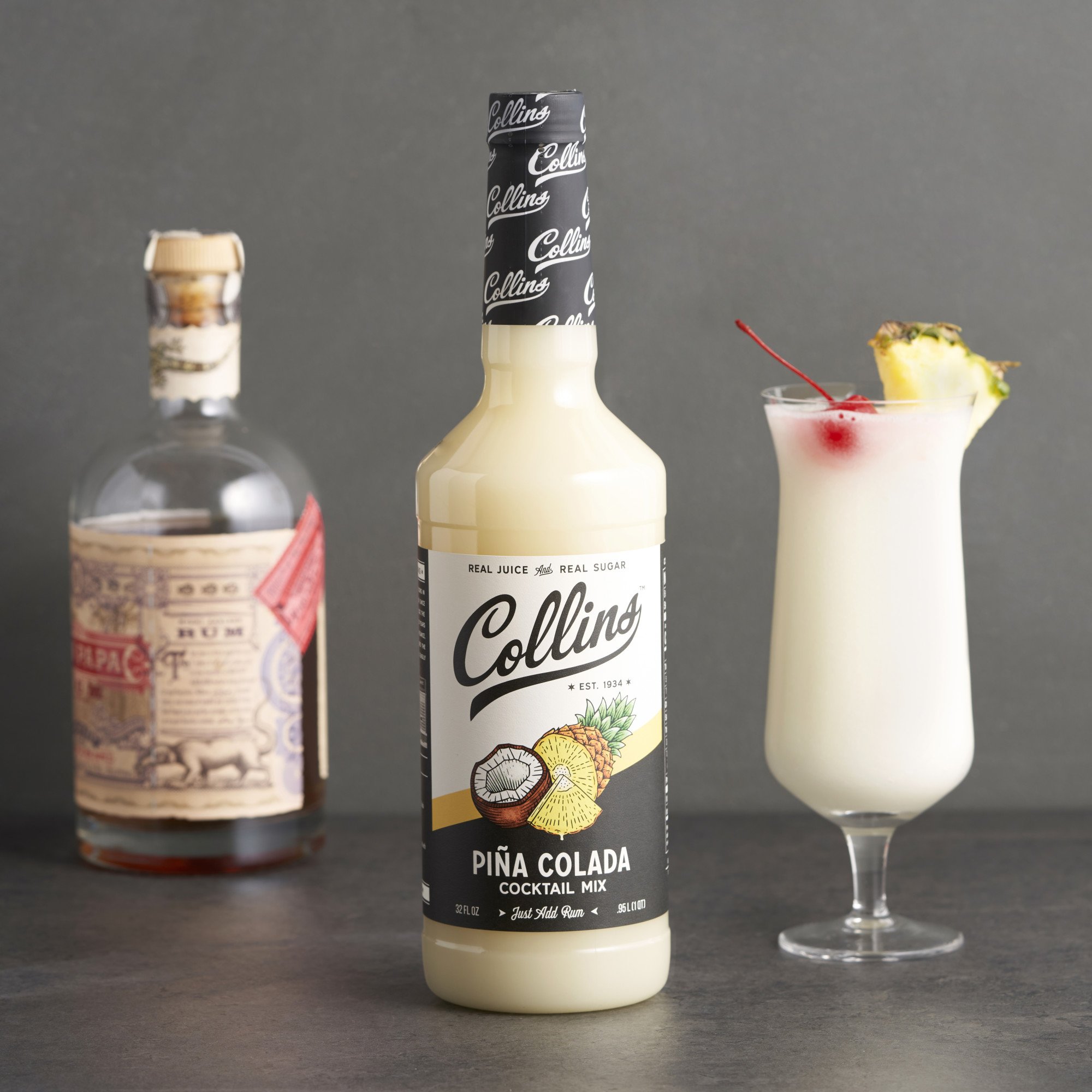 • JUST ADD RUM FOR THE PERFECT PINA COLADA - Collins Pina Colada Mix makes it easy to craft this tropical cocktail. Simply add rum to enjoy a quality drink from the comfort of home. Garnish with fresh pineapple wedges, maraschino cherries, and more!