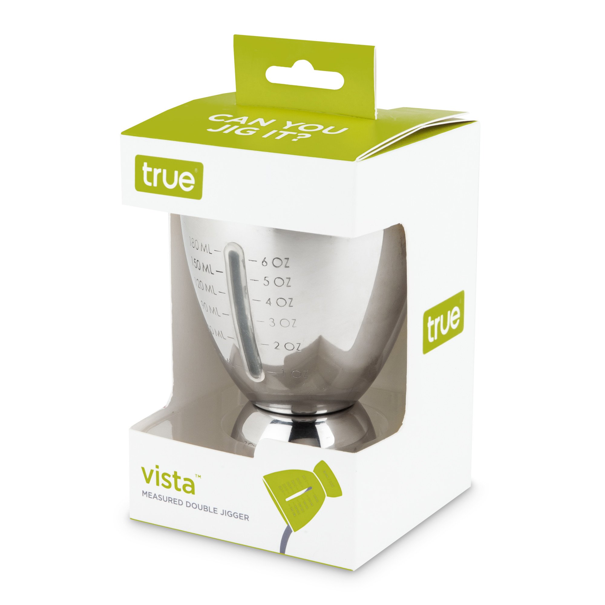 Introducing the True Vista Double Jigger for Bartending - a must-have tool for all your cocktail crafting needs! This stunningly handsome, gleaming silver polish, stainless steel jigger is a versatile addition to your bar essentials. With its 6 oz measuring cup for cocktails, you're set for a heavy pour or perfect for mixing up batch cocktails. Whether you're serving whiskey, wine, or a classic cocktail, this alcohol measuring cup is generously sized to accommodate your pouring needs. But that's not all! The Vista Double Jigger also boasts a 1-ounce cocktail jigger base, making it the ideal whiskey measuring cup. With standard and metric notations etched directly onto the jigger, you'll get perfect accuracy every time. It's more than just a liquor measuring jigger, it's a tool for mastering the art of mixology. Crafted from classic stainless steel with a gleaming finish, this bartender measuring cup is as elegant as it is durable. It's not just a functional tool, but an elegant addition to your barware collection. So whether you're a professional bartender, a home mixologist, or just someone who appreciates a well-made drink, the True Vista Double Jigger is the perfect companion for your bartending adventures.