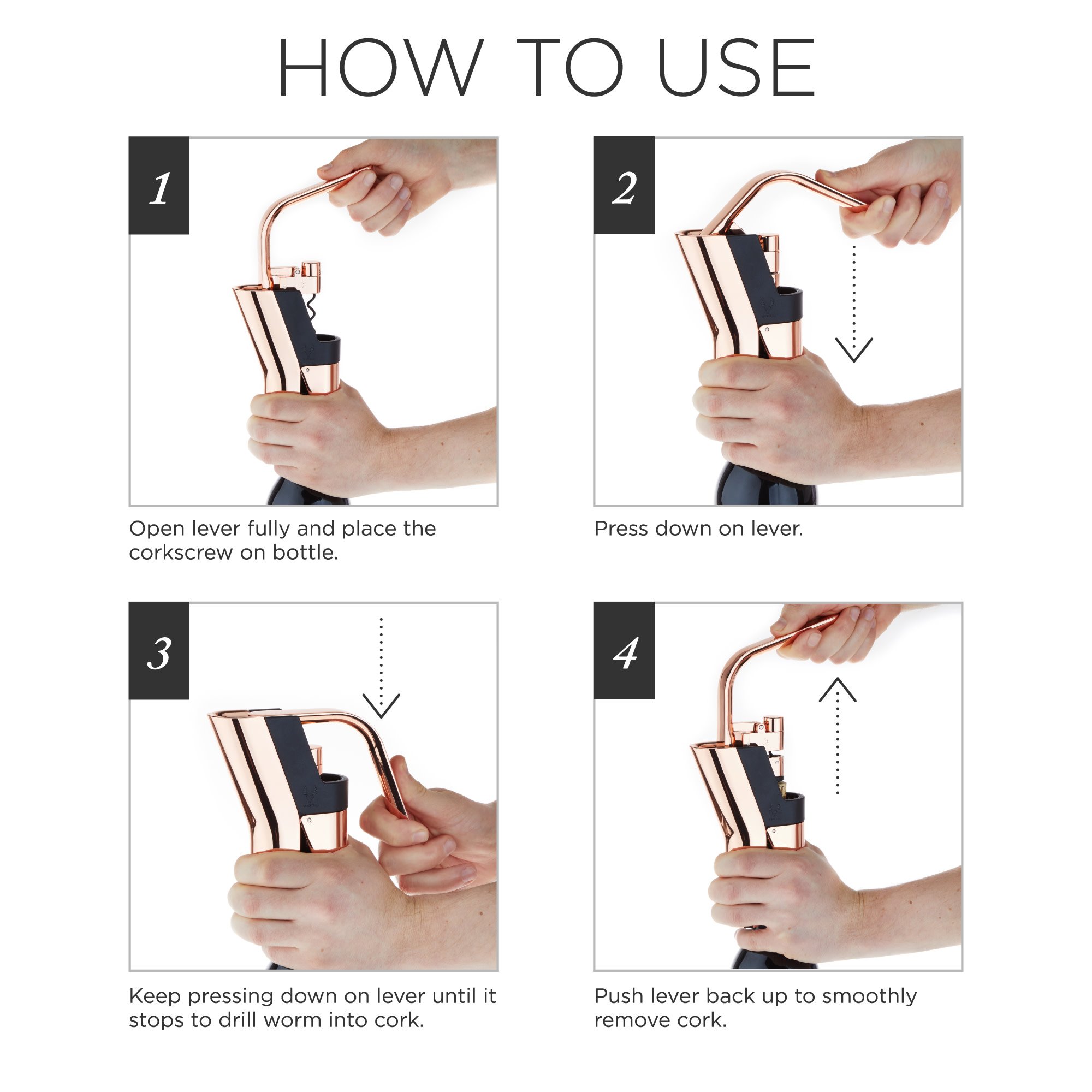 • SERVE WINE WITH EASE – Non-stick coated worm uncorks bottles with one smooth motion, while the lever is much easier to use than traditional corkscrews. Impress guests with your flawless bottle-opening technique.