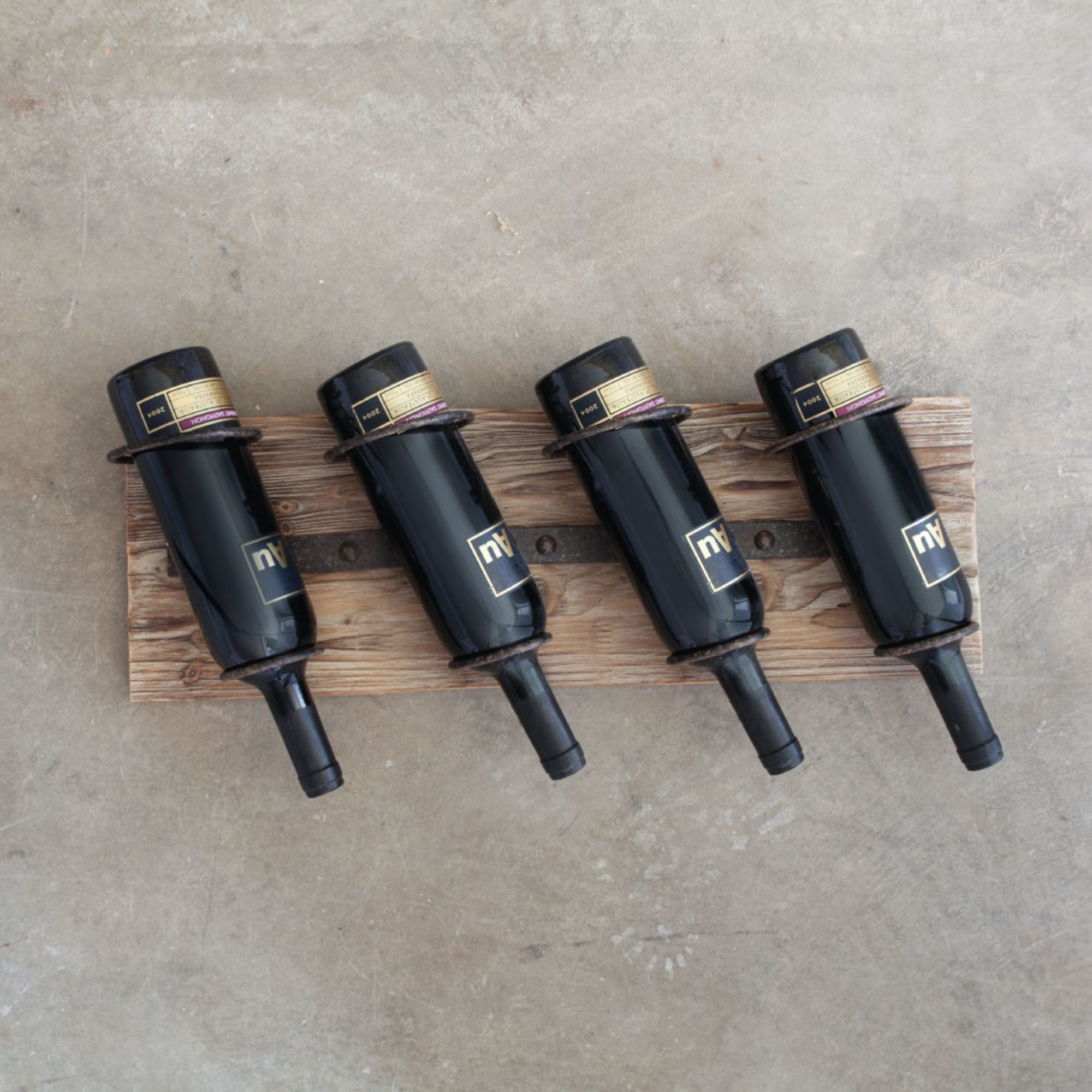 Adorn your walls with the elegance of simplicity. Crafted from wood and metal, our gorgeous Rustic Farmhouse wine rack mounts vertically or horizontally to display four of your favorite bottles. This wine holder recalls country vineyards and old-fashioned hospitality. Wood and wrought iron Holds 4 standard wine bottles 8 x 23.15 inches Twine crafts glassware and home goods with an emphasis on classic style, natural materials, and a nostalgic sense of quality. From elegant glassware to charming bar tools, Twine ties everything together.